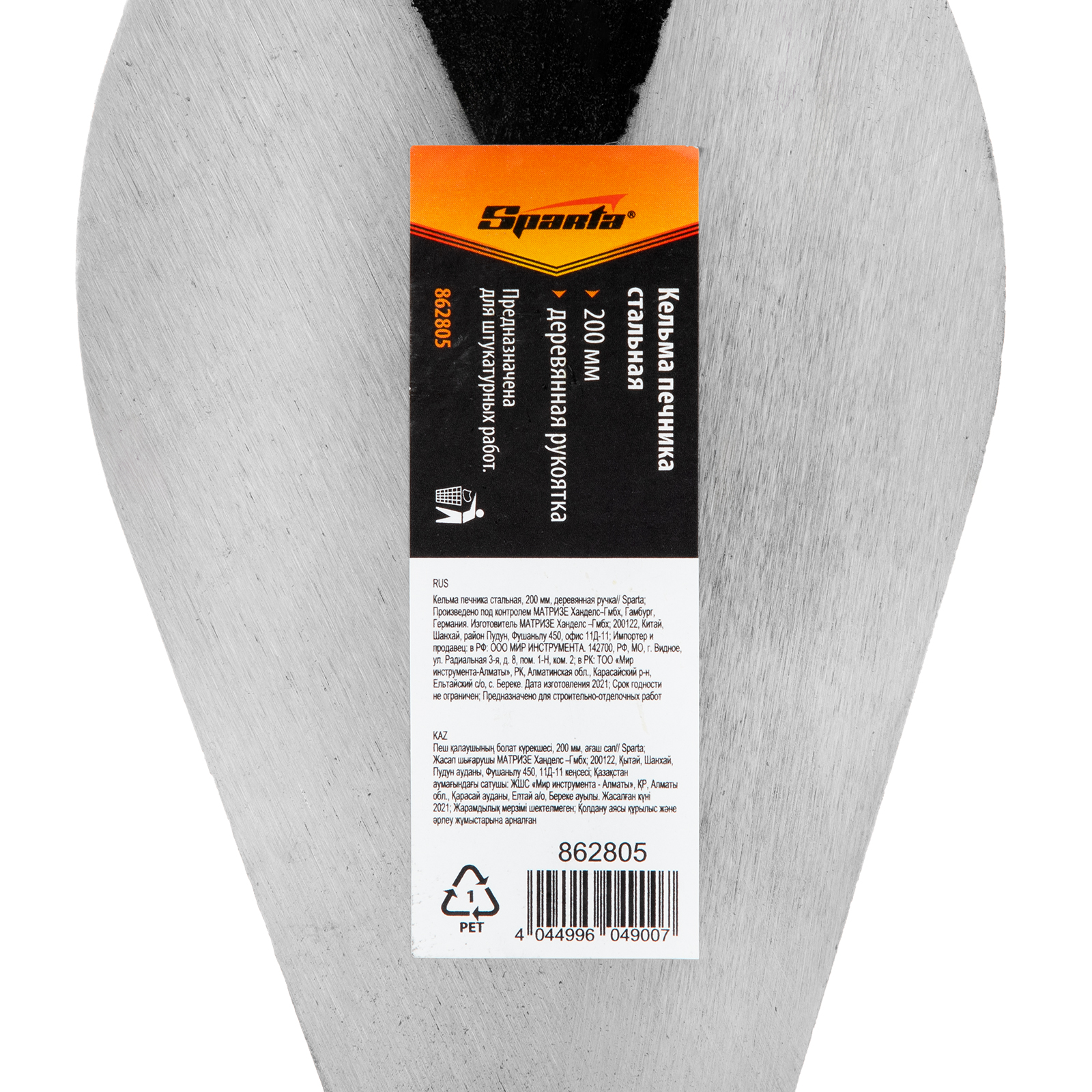 Стальная кельма печника Sparta 862805 с рабочим полотном 200 мм и деревянной ручкой используется для замешивания, отмеривания и нанесения песчано-цементных растворов. Пригодится во время отделочных и строительных работ, особенно для укладки плитки и кирпича.