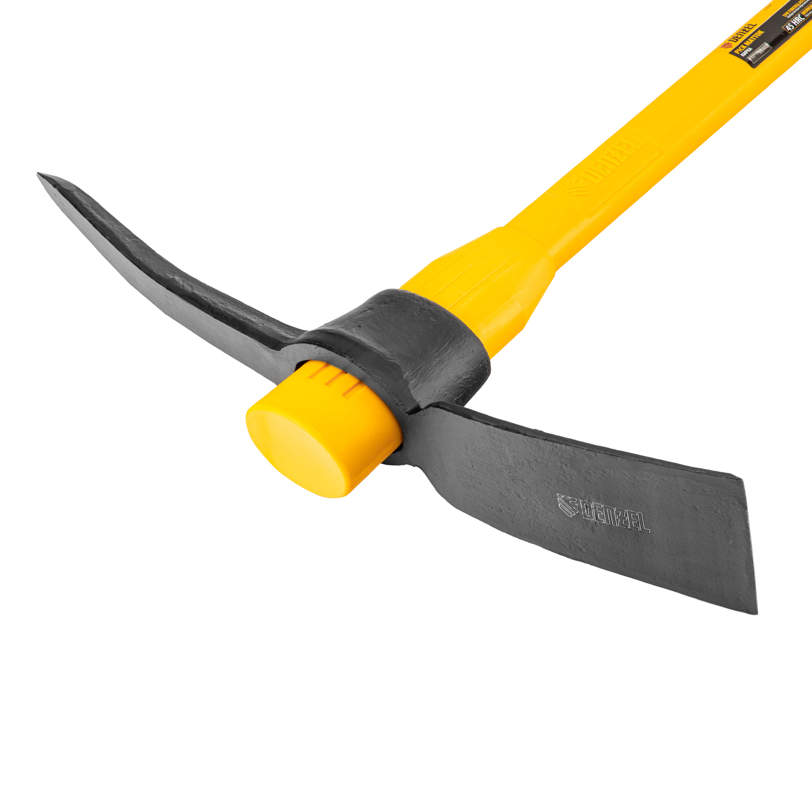 Кирка Denzel 21838 длиной 900 мм, с широкой рабочей частью, головой весом 2250 г и фибергласовой обрезиненной рукояткой, предназначена для работы по камню, рыхления каменистого, пересохшего земляного и глиняного грунта. Может использоваться для разрушения старой кирпичной кладки и колки льда. Инструмент будет полезен на строительной площадке и дачном участке.