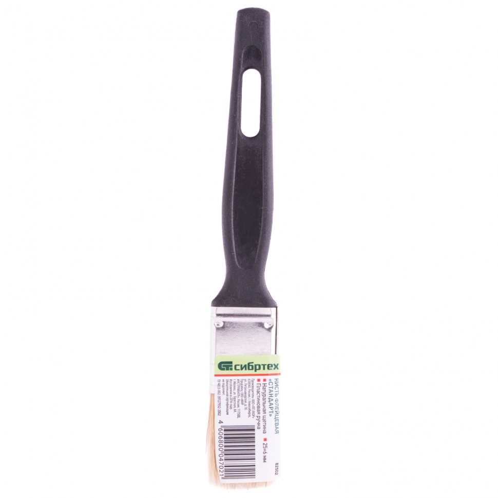 Флейцевая кисть Сибртех «Стандарт» 82502 размером 25 х 6 мм, с натуральной щетиной и пластиковой ручкой, оптимальна для финишной обработки поверхностей и устранения мелких дефектов после использования кистей с более жесткой щетиной. Рабочая часть из свиной щетины с добавлением искусственной устойчива к истиранию и воздействию растворителей.