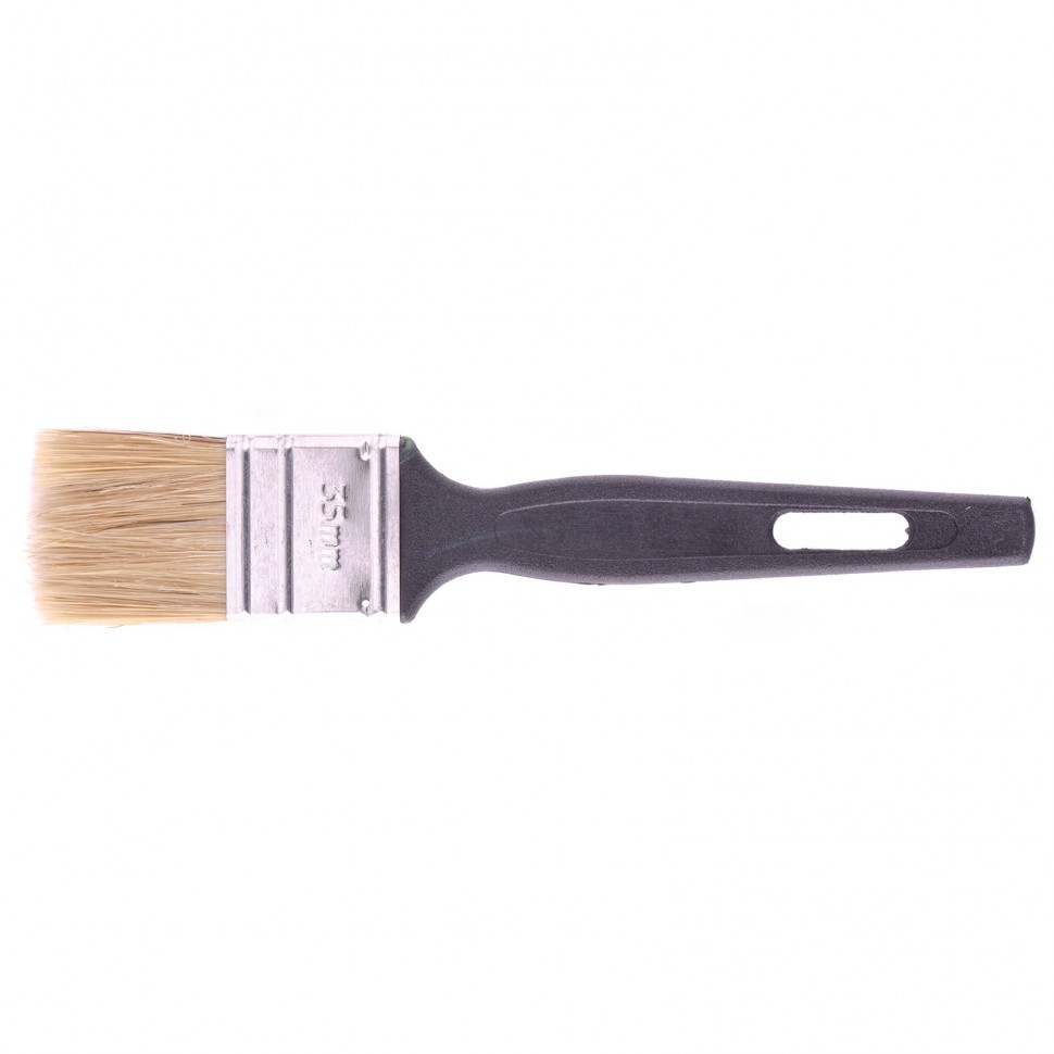 - Ширина 35 мм — кисть оптимальна для окрашивания углов, мелких деталей, плинтусов и рам.