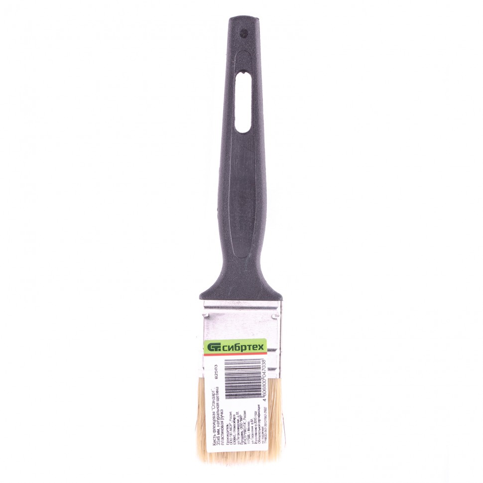 Флейцевая кисть Сибртех «Стандарт» 82503 размером 35 х 6 мм, с натуральной щетиной и пластиковой ручкой, оптимальна для финишной обработки поверхностей и устранения мелких дефектов после использования кистей с более жесткой щетиной. Рабочая часть из свиной щетины с добавлением искусственной устойчива к истиранию и воздействию растворителей.