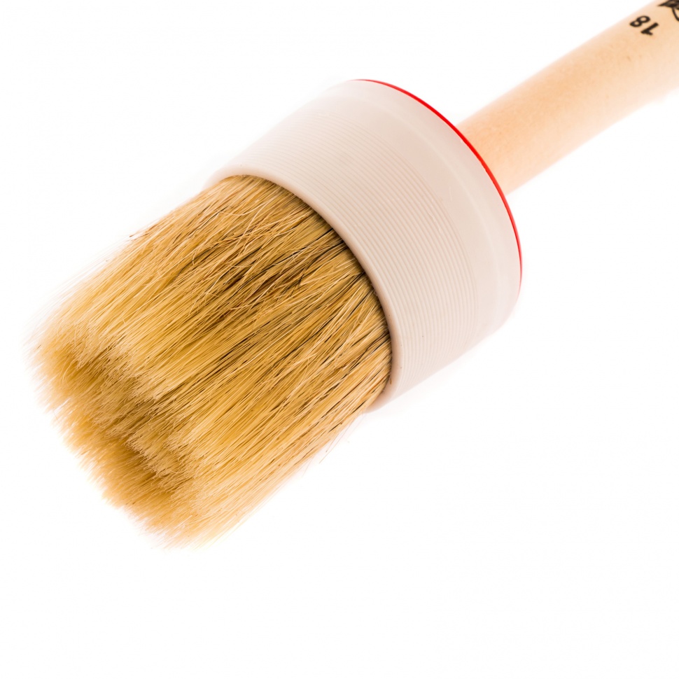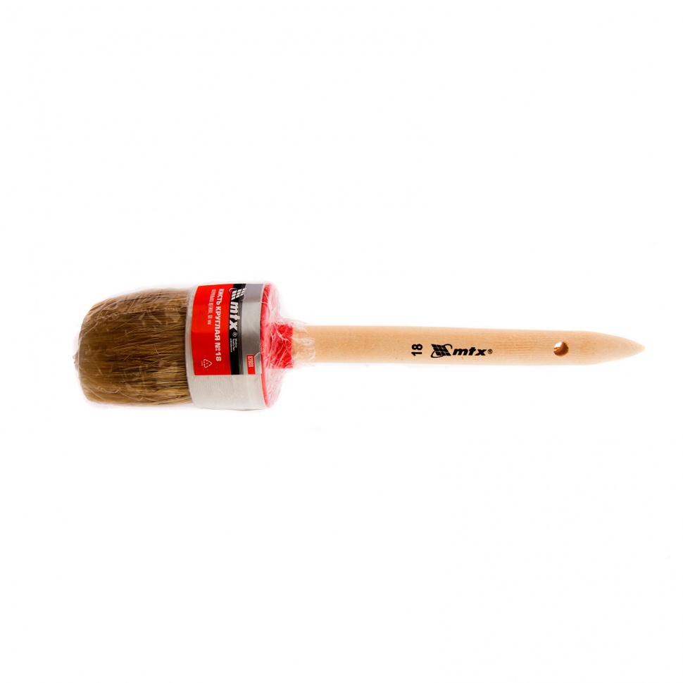 Круглая кисть MTX №18 82088 диаметром 60 мм, с натуральной щетиной и деревянной ручкой, пригодится в быту для окрашивания узких длинных поверхностей. Светлая натуральная свиная щетина с добавлением искусственной обладает высокой износоустойчивостью и может использоваться для нанесения красок с содержанием растворителей, а также масляных красок и лаков.