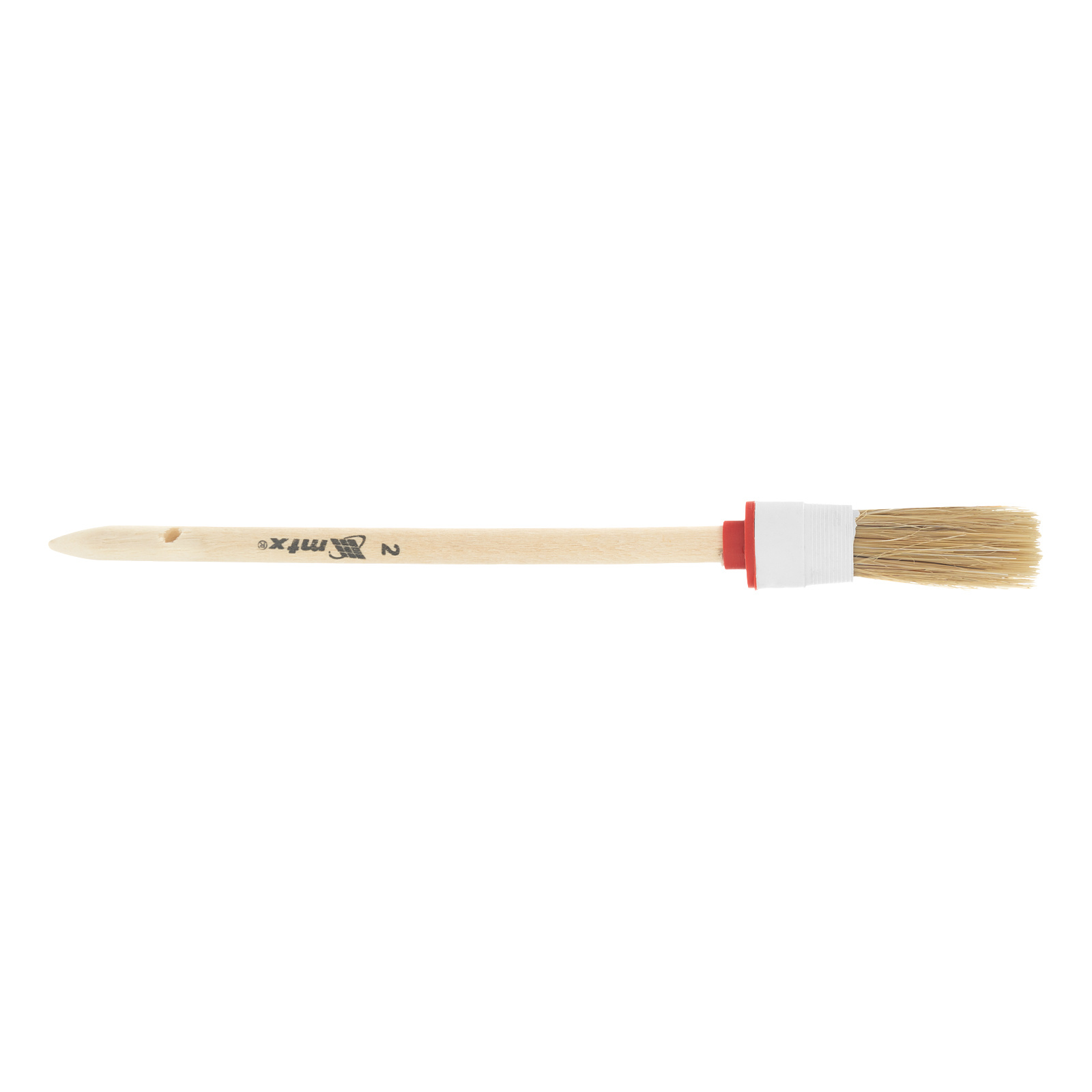 Круглая кисть MTX №2 82072 диаметром 20 мм, с натуральной щетиной и деревянной ручкой, пригодится в быту для окрашивания узких длинных поверхностей. Светлая натуральная свиная щетина с добавлением искусственной обладает высокой износоустойчивостью и может использоваться для нанесения красок с содержанием растворителей, а также масляных красок и лаков.