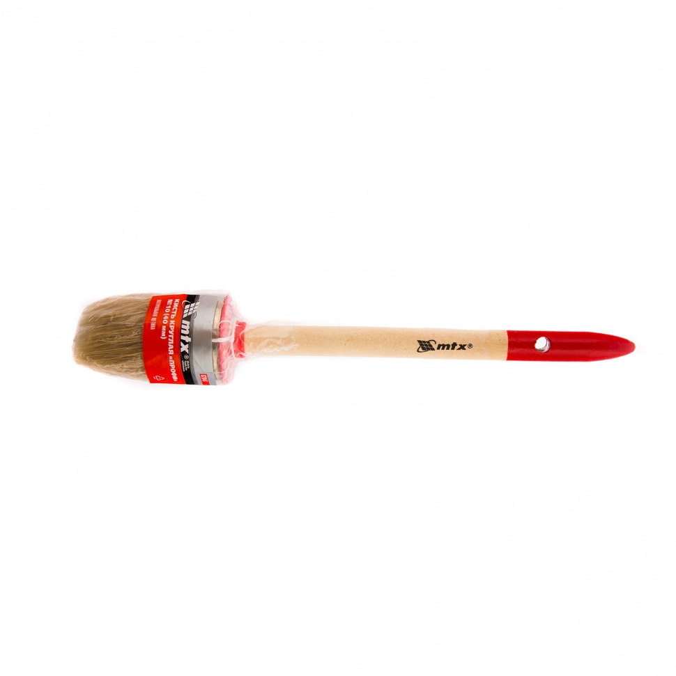Круглая кисть MTX Профи №10 82047 диаметром 40 мм, с натуральной щетиной и деревянной ручкой, используется при проведении профессиональных малярных работ. Рабочая часть из натуральной свиной щетины с небольшим добавлением искусственной устойчива к агрессивным масляным краскам и ЛКМ на основе растворителей. Круглая кисть оптимально подходит для окрашивания узких и труднодоступных участков.