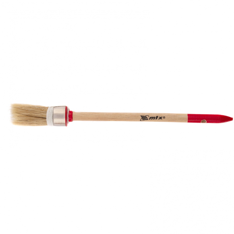 Круглая кисть MTX Профи №2 82041 диаметром 20 мм, с натуральной щетиной и деревянной ручкой, используется при проведении профессиональных малярных работ. Рабочая часть из натуральной свиной щетины с небольшим добавлением искусственной устойчива к агрессивным масляным краскам и ЛКМ на основе растворителей. Круглая кисть оптимально подходит для окрашивания узких и труднодоступных участков.