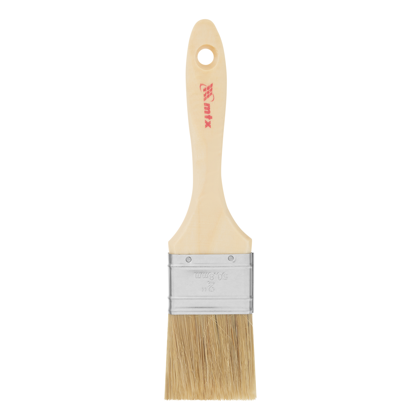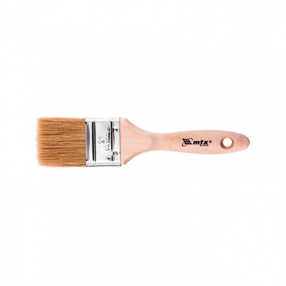 Плоская кисть MTX «Евро» 83053 шириной 2 дюйма, с натуральной щетиной и деревянной ручкой, используется для профессионального окрашивания поверхностей. Рекомендуется для нанесения агрессивных ЛКМ с содержанием растворителей.