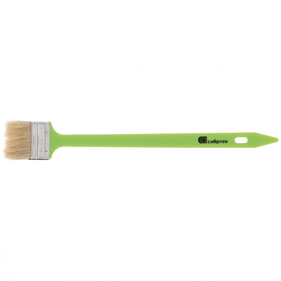 Радиаторная кисть Сибртех 83857 шириной 50 мм, с натуральной щетиной и пластиковой ручкой, позволяет окрашивать радиаторы, трубы, проволочные конструкции. Особенно удобна для покраски углов и стыков пола или потолка со стенами. Удлиненная ручка облегчает проведение малярных работ. Натуральная щетина с добавлением искусственного ворса устойчива к деформации и сохраняет упругость и краскообменные качества при использовании масляных красок и эмалей.