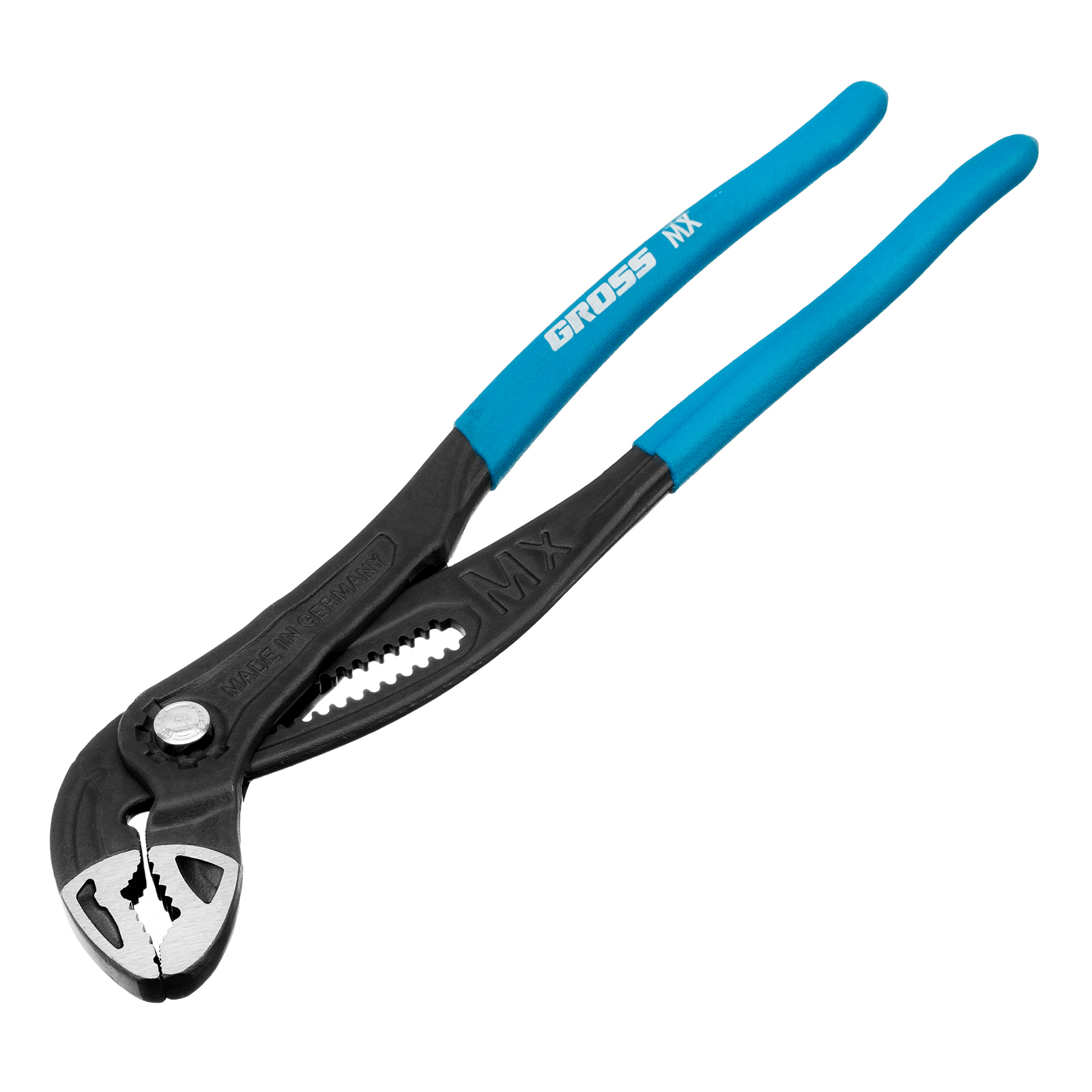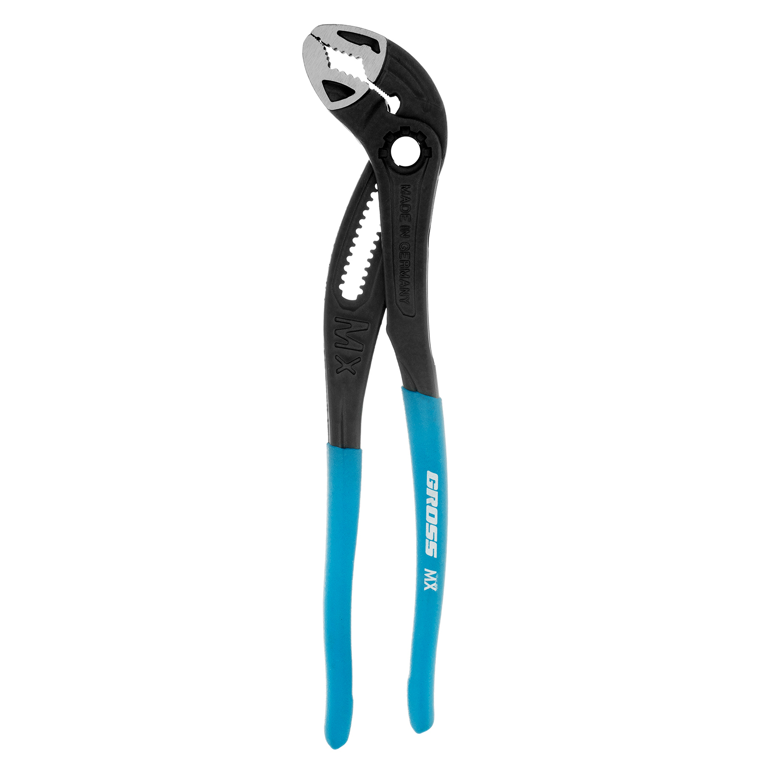 Переставные клещи Gross 15728 длиной 300 мм, с кнопочным механизмом и обливными рукоятками, — профессиональный инструмент для работ с сантехникой, фитингами, трубами и т.д. Рабочие губки с насечками обеспечивают надежный захват изделий диаметром до 65 мм. Клещи удобны для работы в труднодоступных местах.