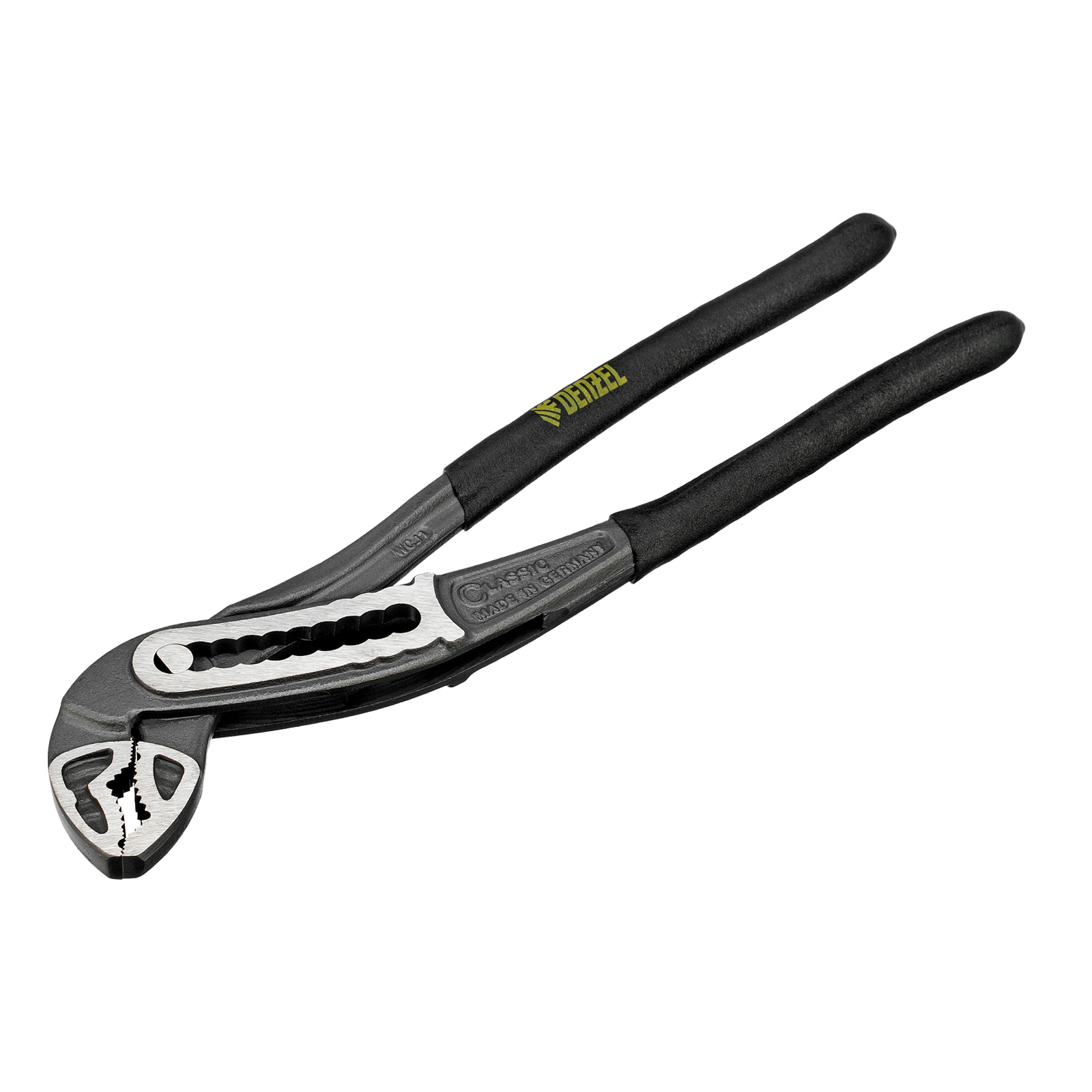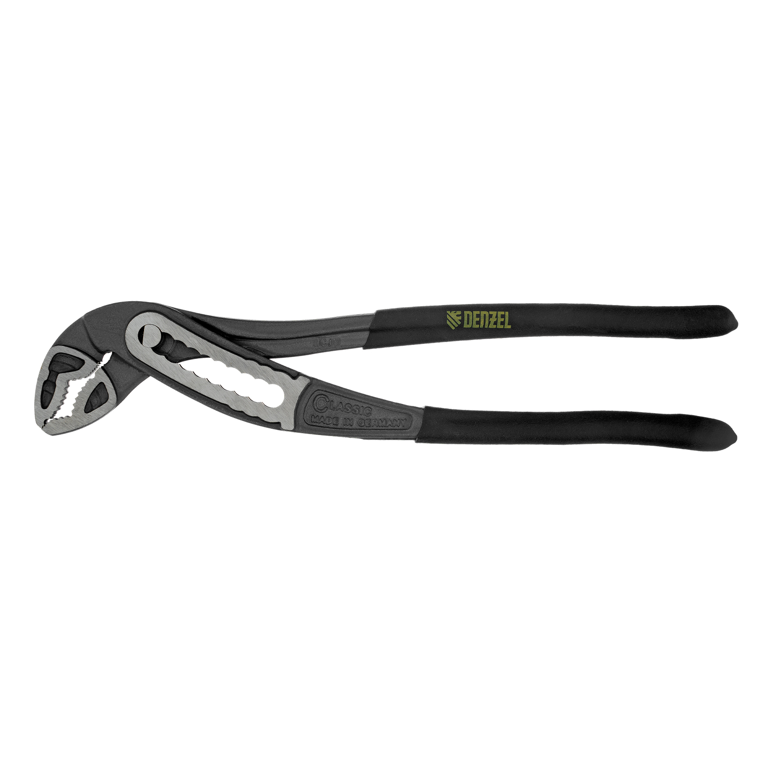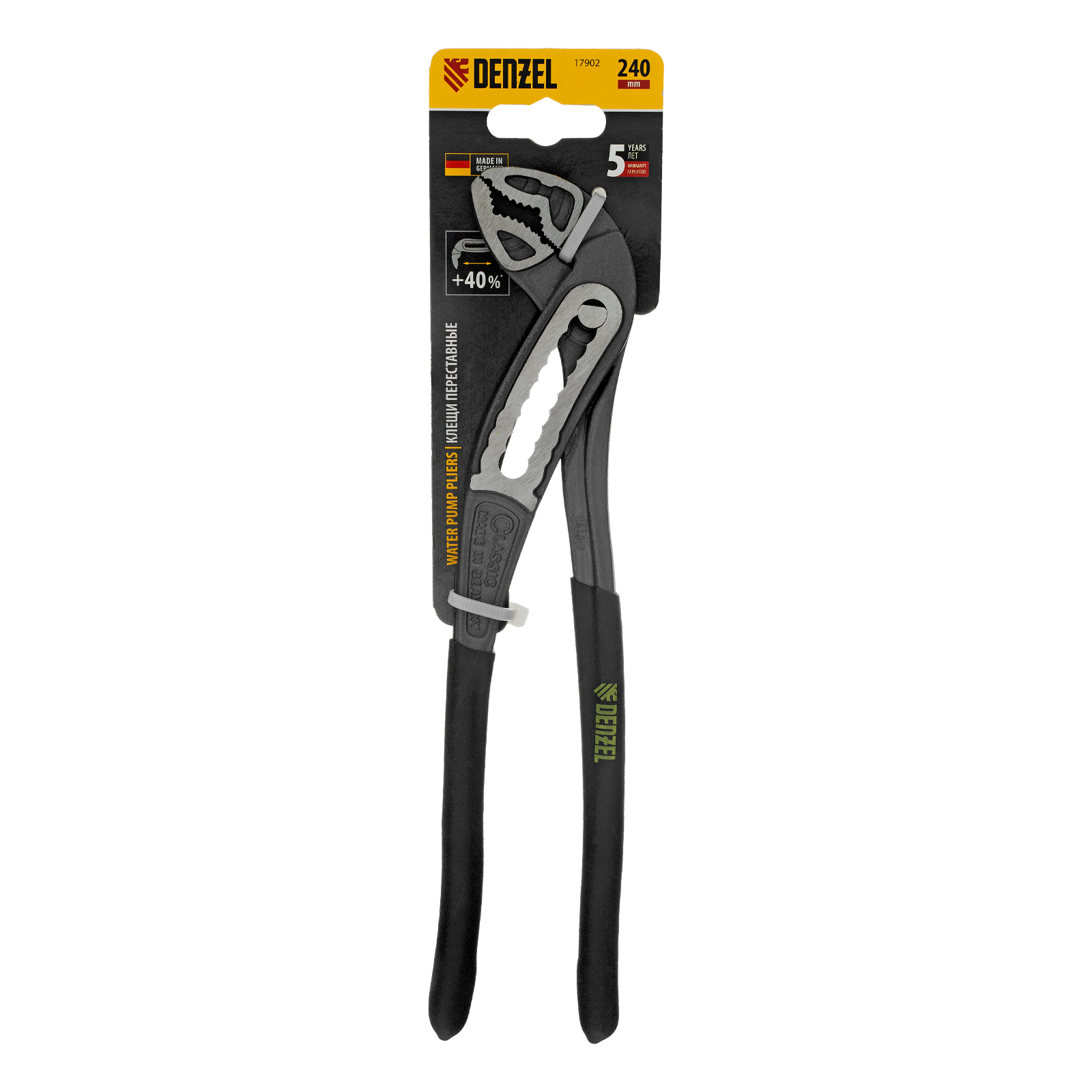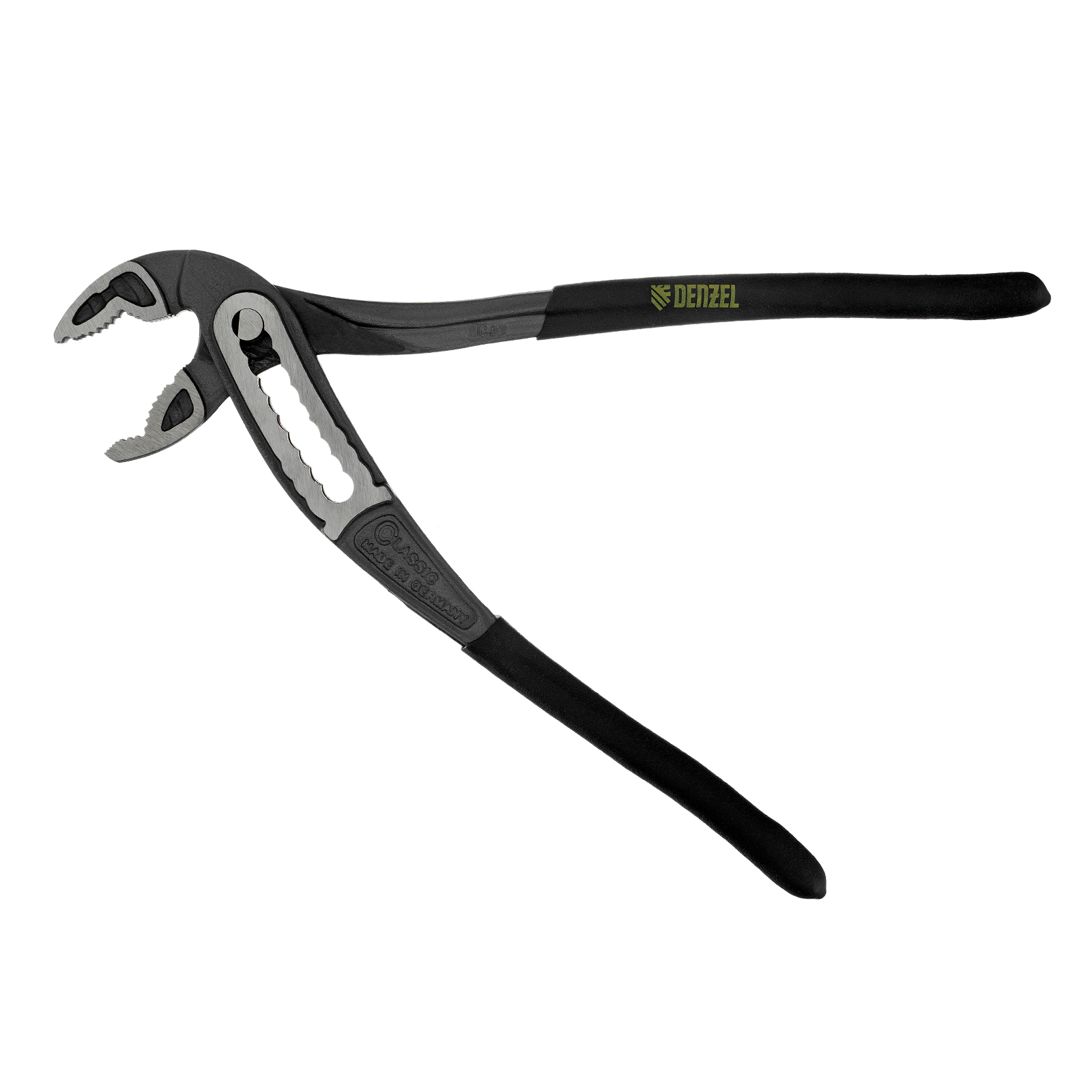 Переставные клещи Denzel 17902 длиной 240 мм, с обливными рукоятками, предназначены для фиксации и вращения деталей и заготовок различной формы. Подходят для захвата фитингов, труб, крепежных элементов. Инструмент используется при проведении ремонтных, монтажных, сантехнических работ.
