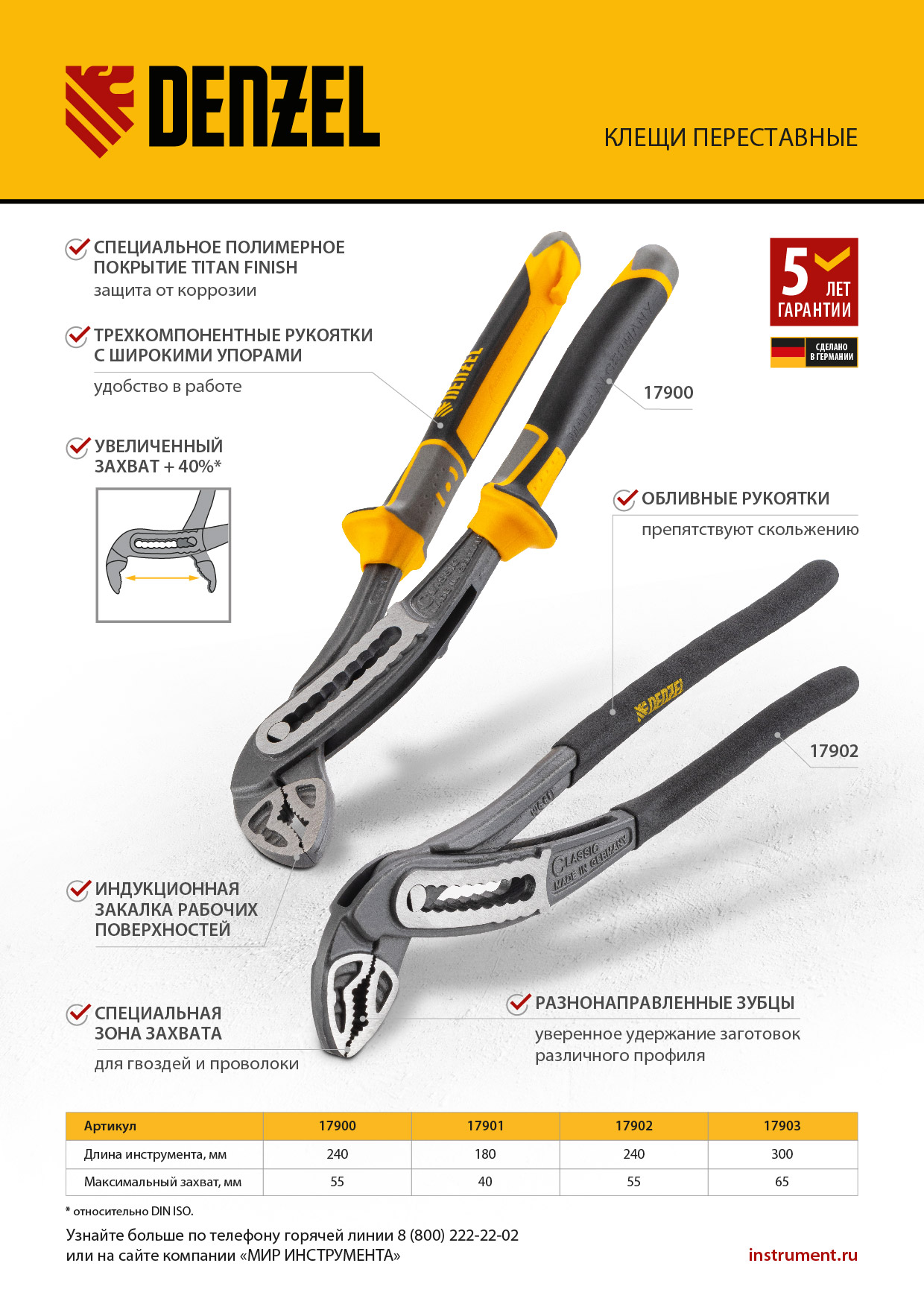 - Гарантия 5 лет — высокое качество инструмента подтверждено производителем.
