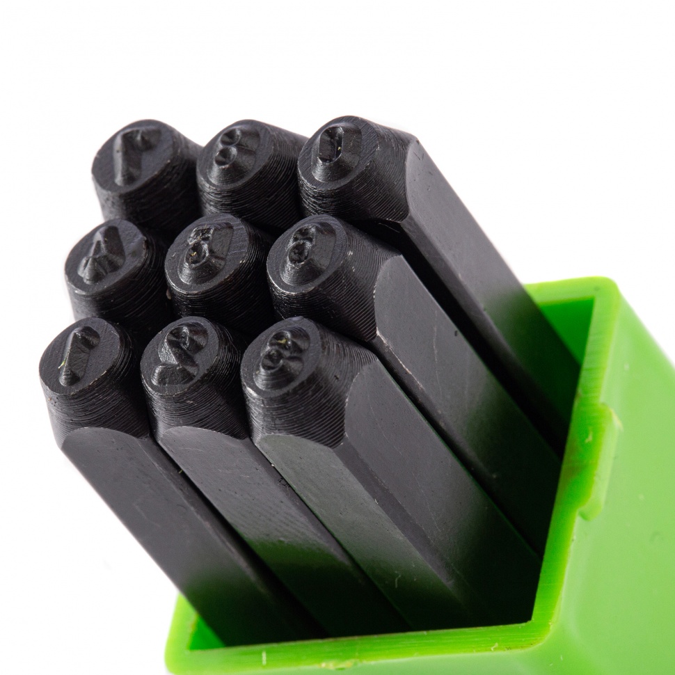 - Высокий ресурс и деформационная стойкость — клейма выполнены из инструментальной среднеуглеродистой стали, рабочие части закалены до необходимой твердости.