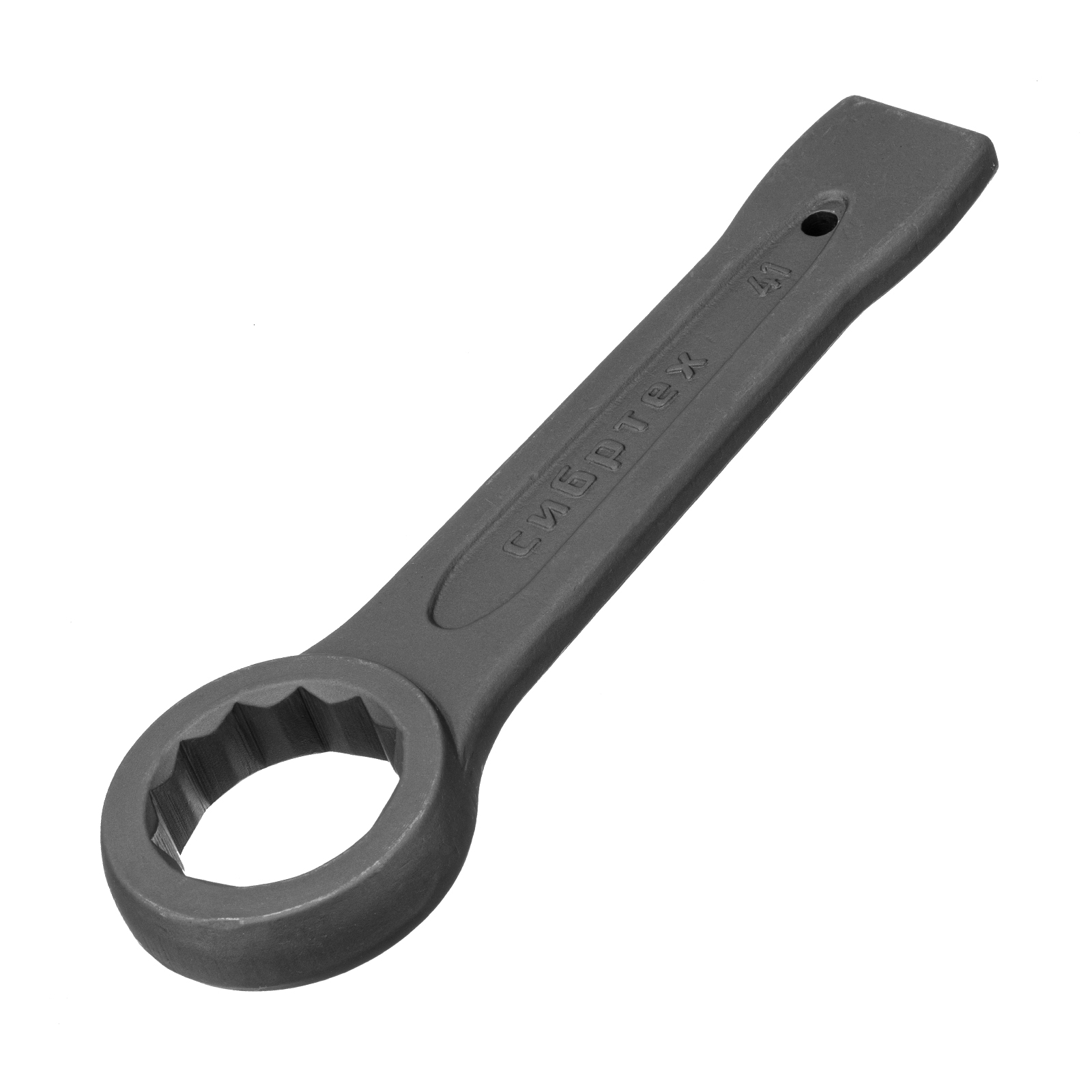 Ключ кольцевой ударный Сибртех 14276 позволяет откручивать и закручивать резьбовые соединения размером 41 мм. Благодаря 12-гранному профилю надежно удерживает головку крепежа. Удобен для работы в ограниченном пространстве — для перестановки его достаточно повернуть на 30°. Инструмент применяется в слесарных мастерских, будет полезен во время ремонта, а также для решения бытовых задач.