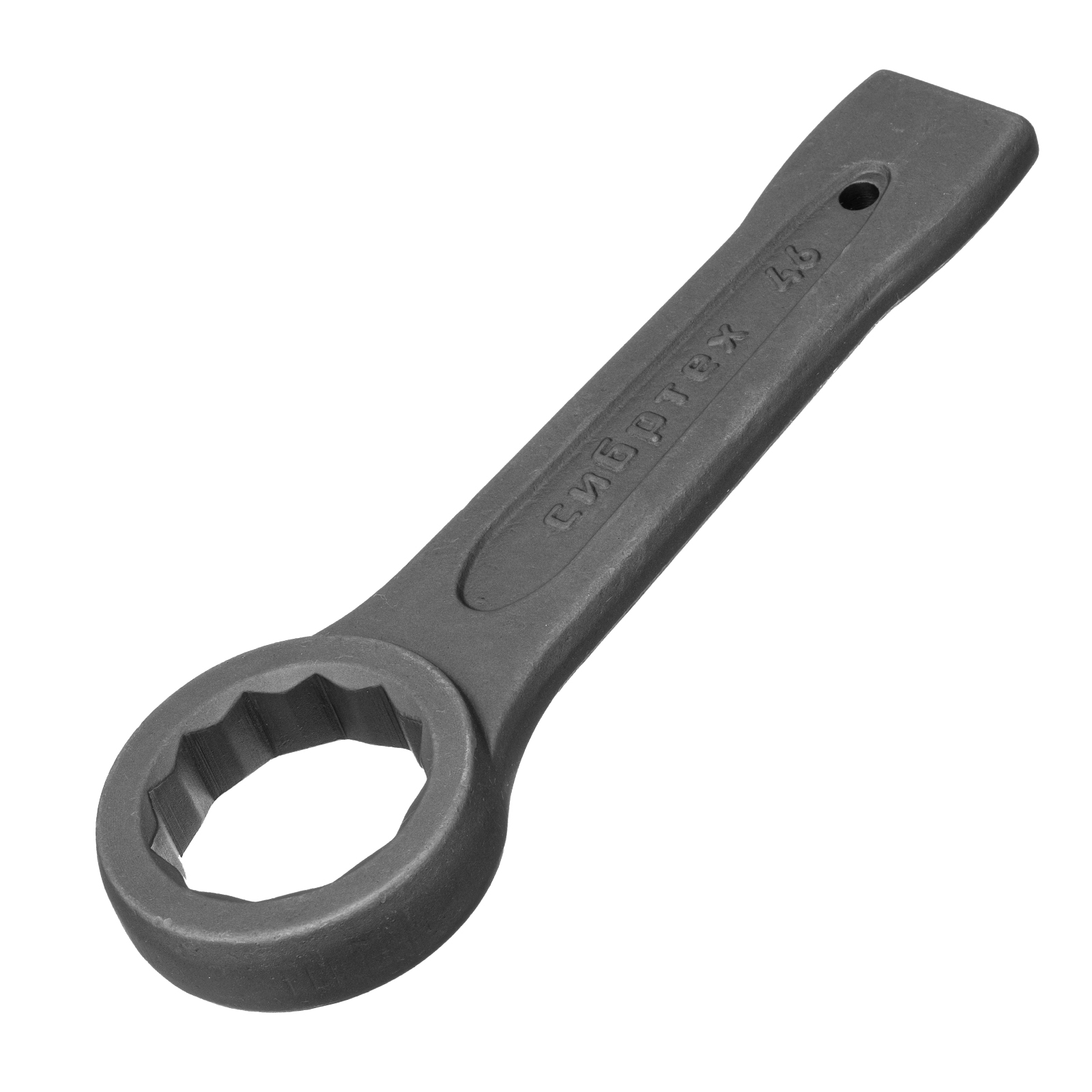 Ключ кольцевой ударный Сибртех 14277 позволяет откручивать и закручивать резьбовые соединения размером 46 мм. Благодаря 12-гранному профилю надежно удерживает головку крепежа. Удобен для работы в ограниченном пространстве — для перестановки его достаточно повернуть на 30°. Инструмент применяется в слесарных мастерских, будет полезен во время ремонта, а также для решения бытовых задач.