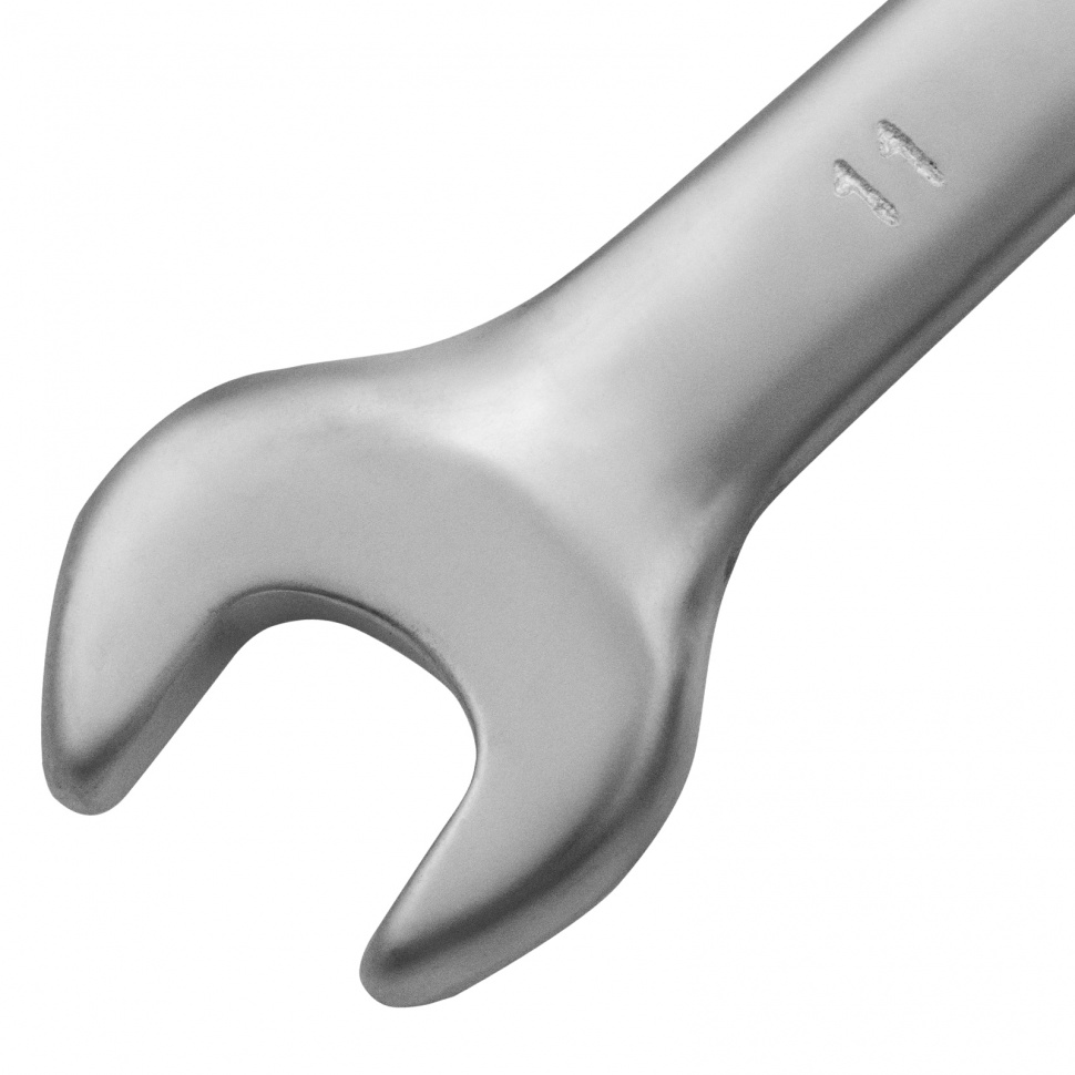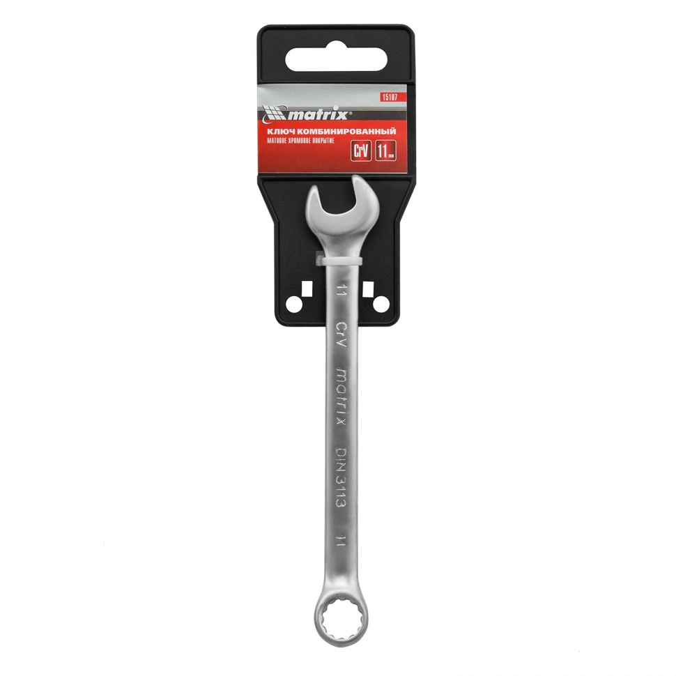 Комбинированный ключ Matrix 15107 размером 11 мм, из стали CrV, с покрытием «матовый хром», пригодится во время ремонтных работ дома или в гараже. С его помощью можно быстро монтировать и демонтировать крепежные элементы. Угол наклона кольцевого зева относительно плоскости инструмента составляет 15°, поэтому ключом удобно работать в труднодоступных местах.