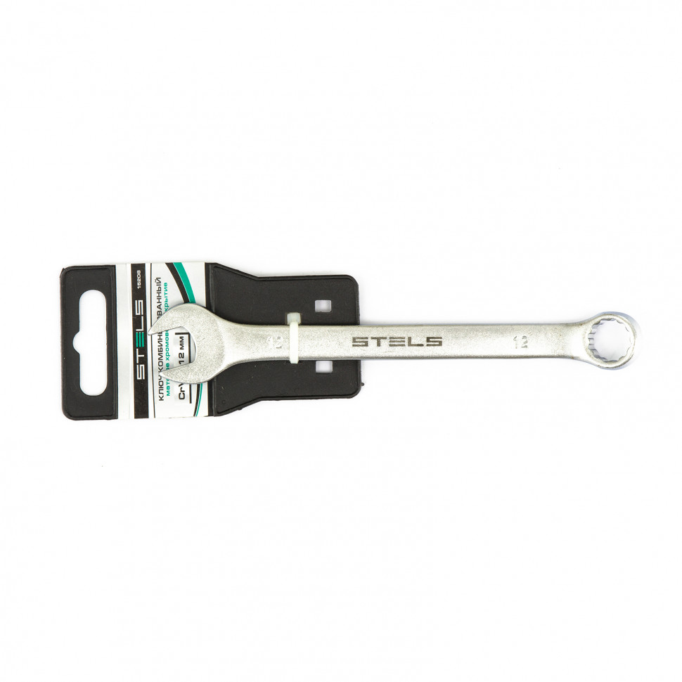 Комбинированный ключ Stels 15208 из стали CrV, 12 мм, покрытый матовым хромом, используется для закручивания и откручивания гаечных и болтовых соединений. Накидная головка имеет 12-гранную внутреннюю поверхность, что облегчает работу с крепежом и уменьшает опасность его повреждения. Ключ применяется в слесарных мастерских и автосервисах, а также будет полезен для решения бытовых задач.
