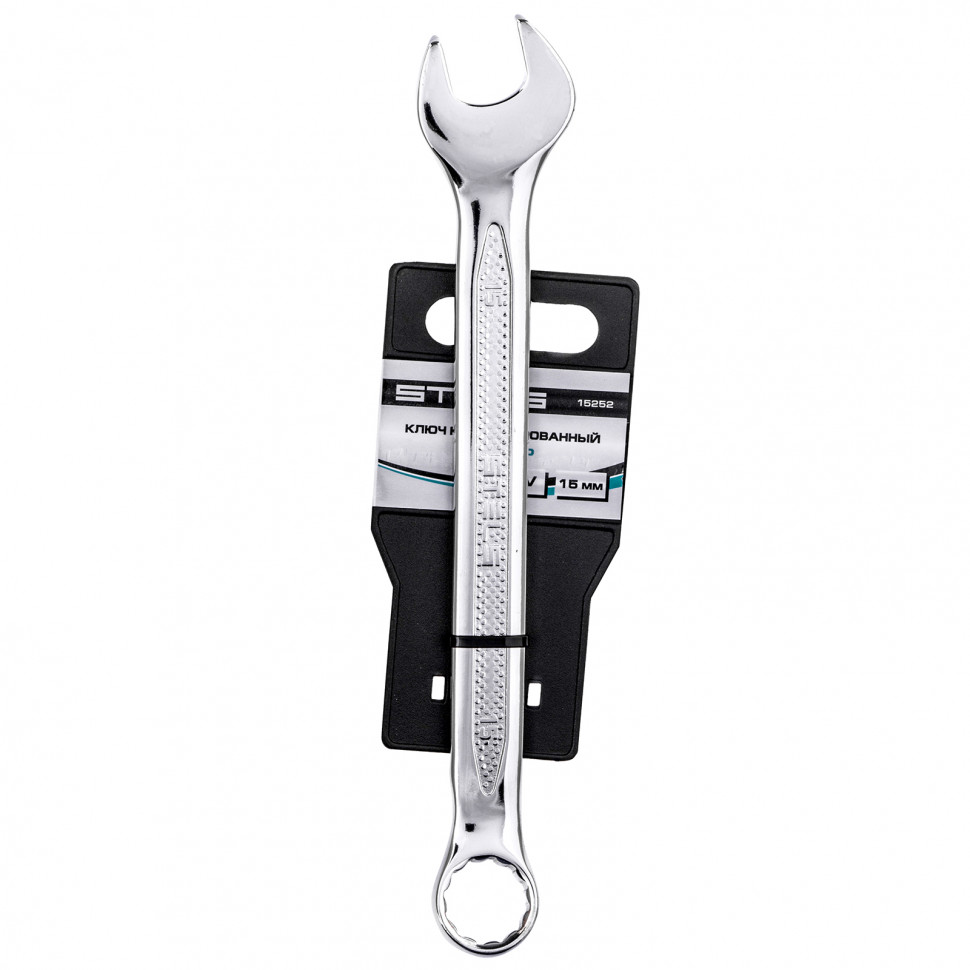 Комбинированный ключ Stels 15252 из стали CrV, 15 мм, антислип, позволяет откручивать и закручивать резьбовые соединения. Универсален в применении, т.к. имеет кольцевую и рожковую головки. 12-гранный профиль накидного зева обеспечивает увеличенную площадь контакта с поверхностью крепежа, что минимизирует вероятность его деформации. Ключ будет полезен в автомастерской, для монтажа и демонтажа оборудования, пригодится для работ по дому.