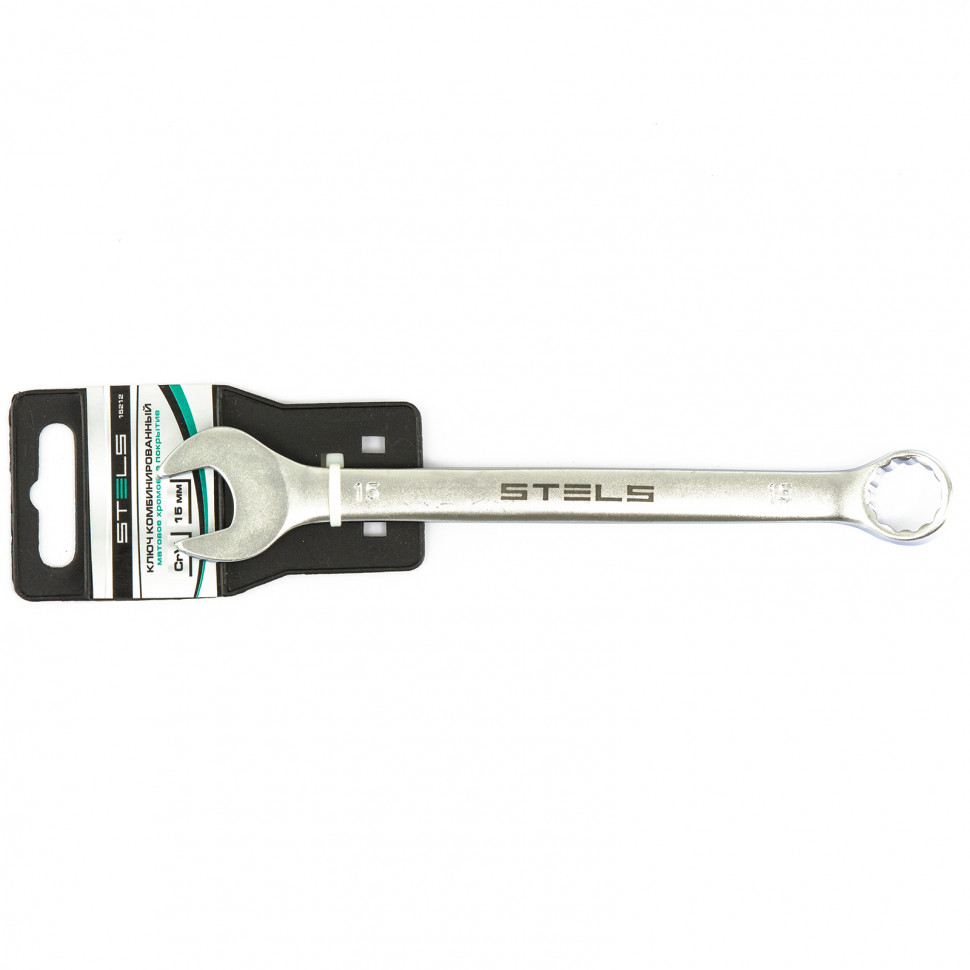 Комбинированный ключ Stels 15212 из стали CrV, 15 мм, покрытый матовым хромом, используется для закручивания и откручивания гаечных и болтовых соединений. Накидная головка имеет 12-гранную внутреннюю поверхность, что облегчает работу с крепежом и уменьшает опасность его повреждения. Ключ применяется в слесарных мастерских и автосервисах, а также будет полезен для решения бытовых задач.