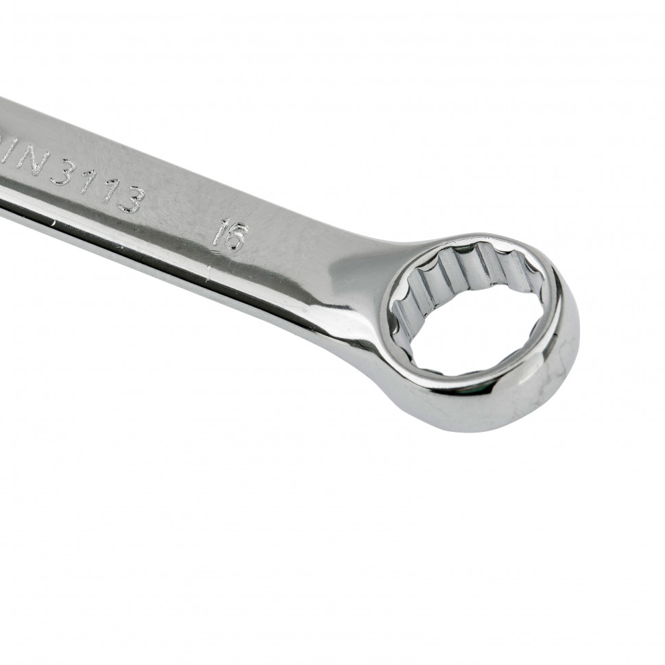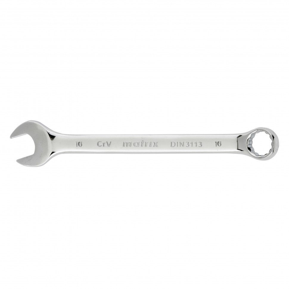 Комбинированный ключ Matrix 15160 размером 16 мм, из стали CrV, с покрытием «полированный хром», пригодится во время ремонтных работ дома или в гараже. С его помощью можно быстро монтировать и демонтировать крепежные элементы. Угол наклона кольцевого зева относительно плоскости инструмента составляет 15°, поэтому ключом удобно работать в труднодоступных местах.