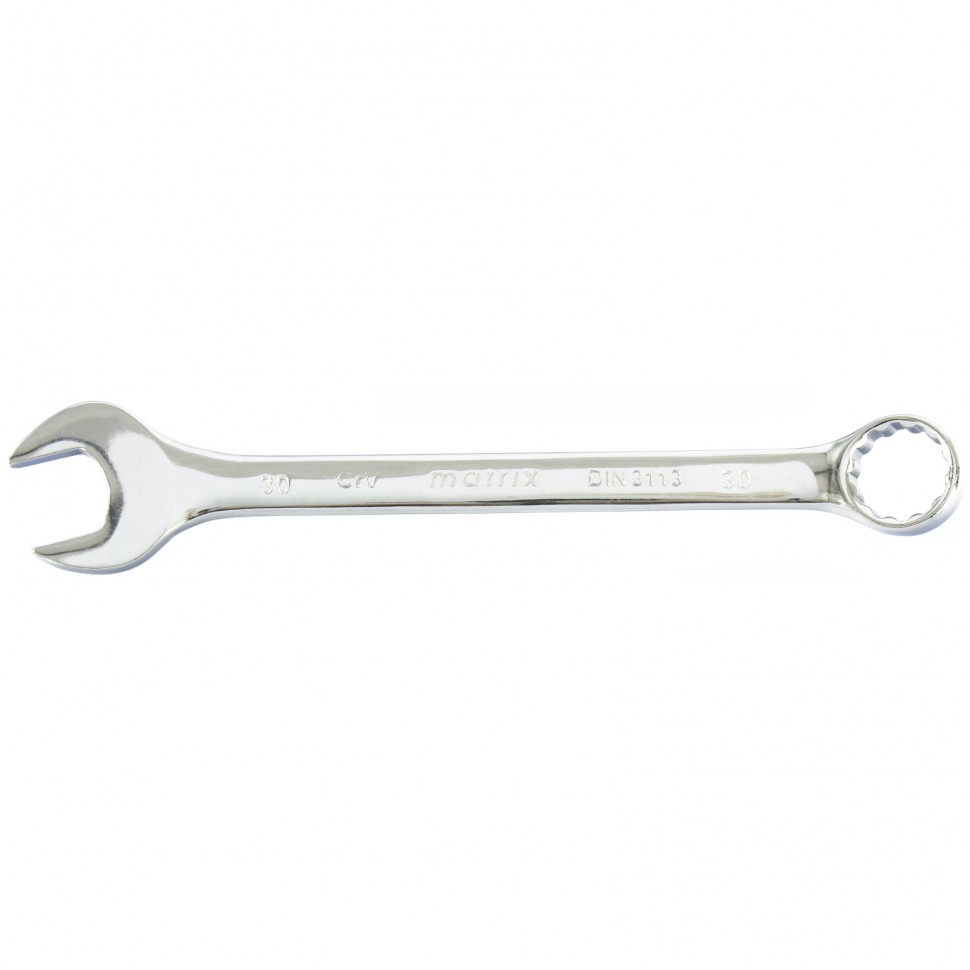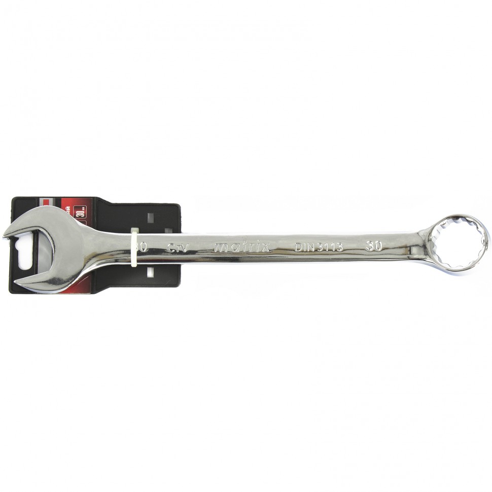 Комбинированный ключ Matrix 15174 размером 30 мм, из стали CrV, с покрытием «полированный хром», пригодится во время ремонтных работ дома или в гараже. С его помощью можно быстро монтировать и демонтировать крепежные элементы. Угол наклона кольцевого зева относительно плоскости инструмента составляет 15°, поэтому ключом удобно работать в труднодоступных местах.