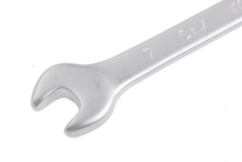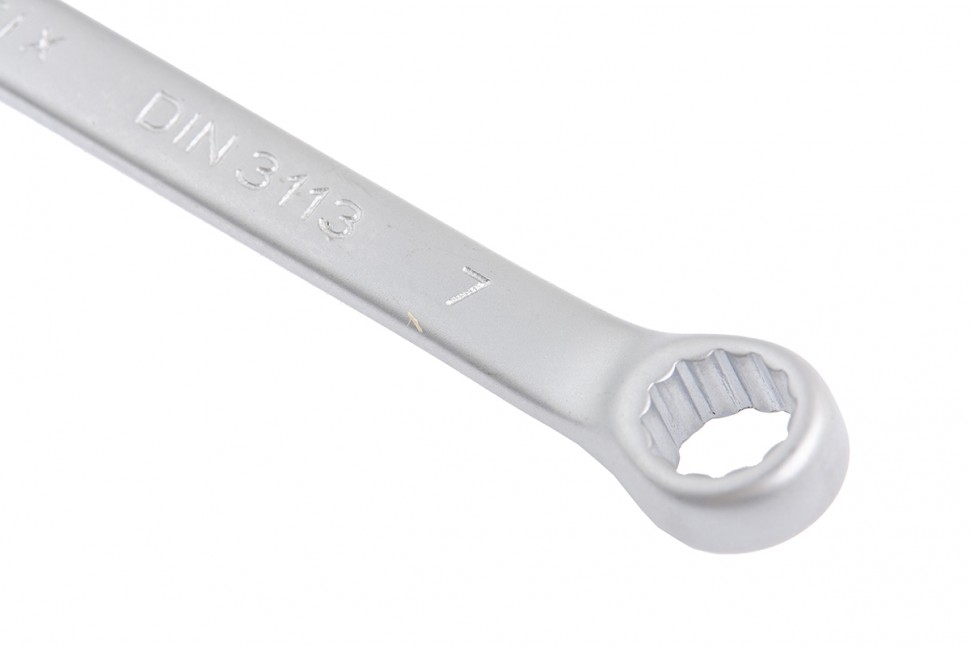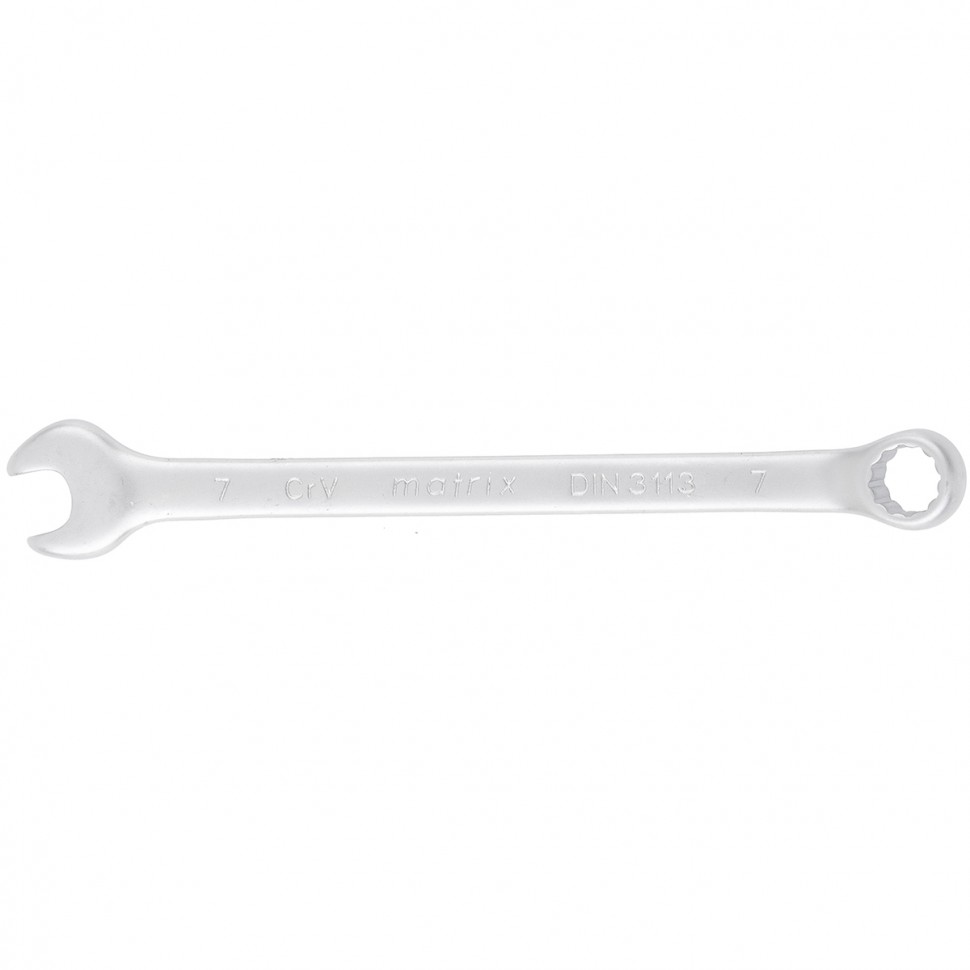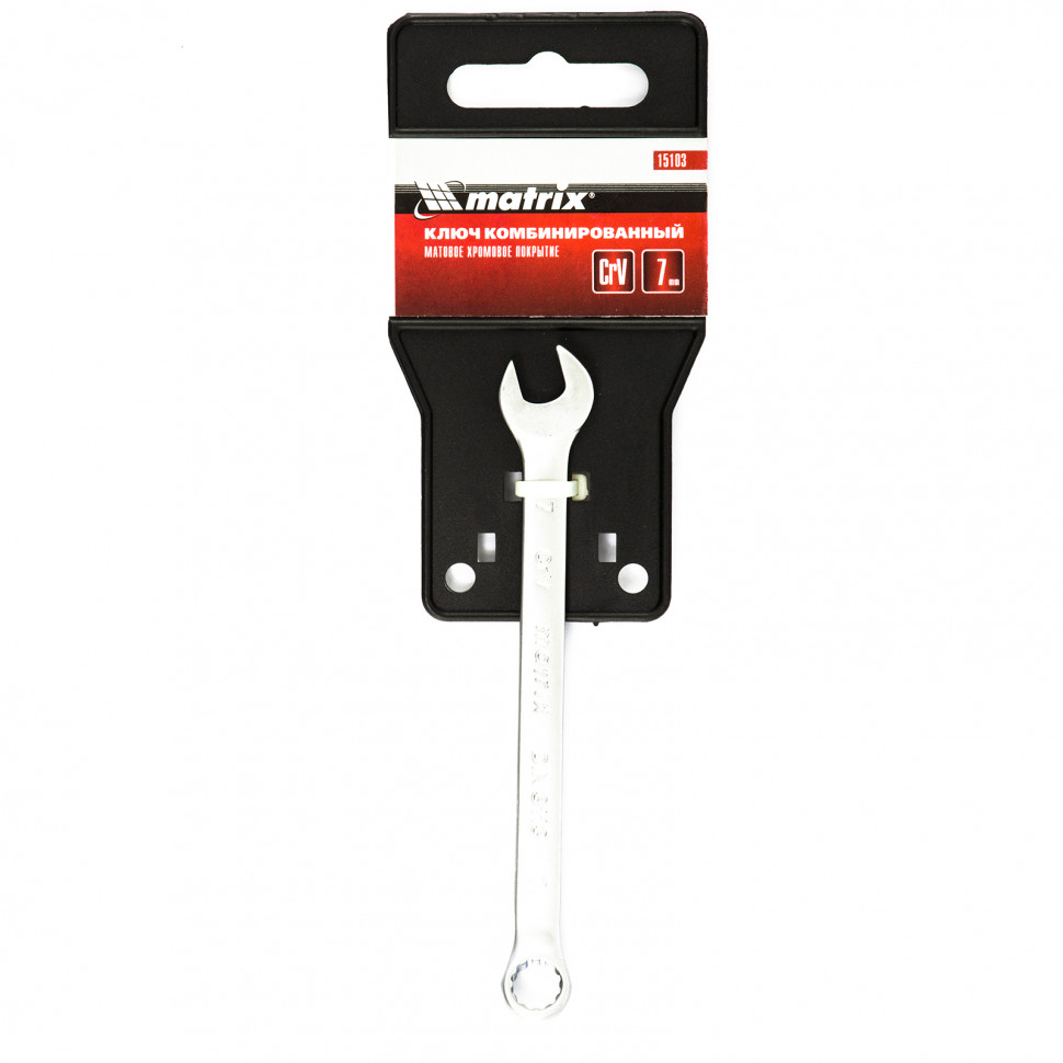 Комбинированный ключ Matrix 15103 размером 7 мм, из стали CrV, с покрытием «матовый хром», пригодится во время ремонтных работ дома или в гараже. С его помощью можно быстро монтировать и демонтировать крепежные элементы. Угол наклона кольцевого зева относительно плоскости инструмента составляет 15°, поэтому ключом удобно работать в труднодоступных местах.