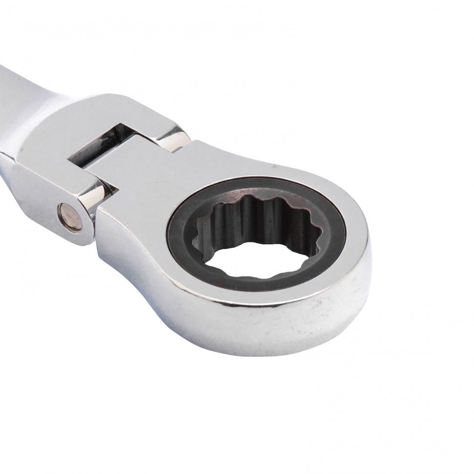 - Удобная работа в труднодоступных местах — храповой механизм на 72 зуба обеспечивает плавное вращение (шаг трещотки составляет 5°), а шарнир позволяет поворачивать рабочую часть под углом.