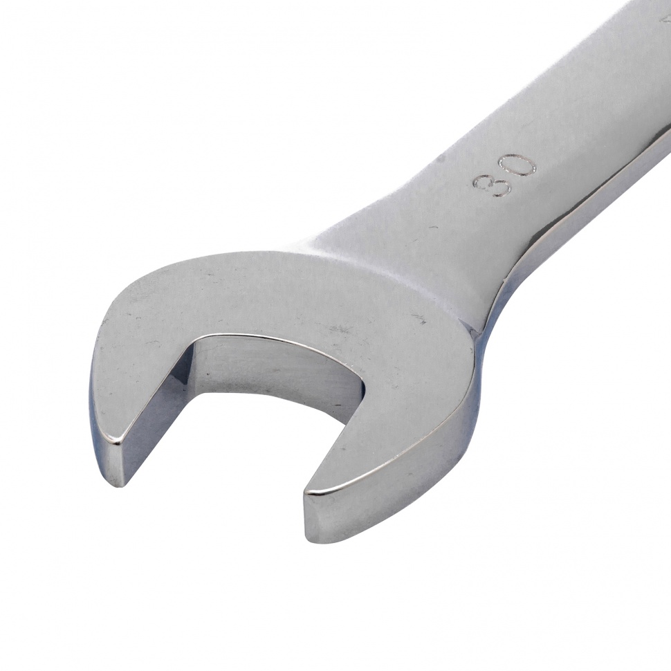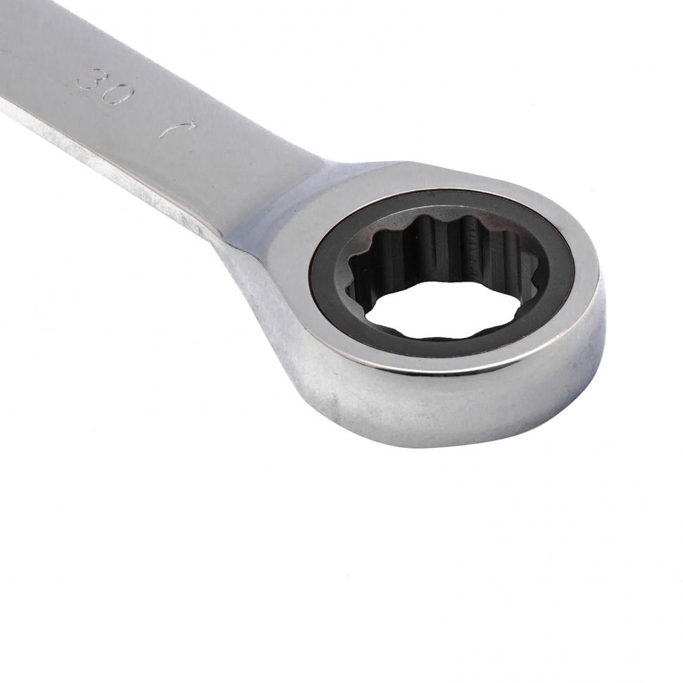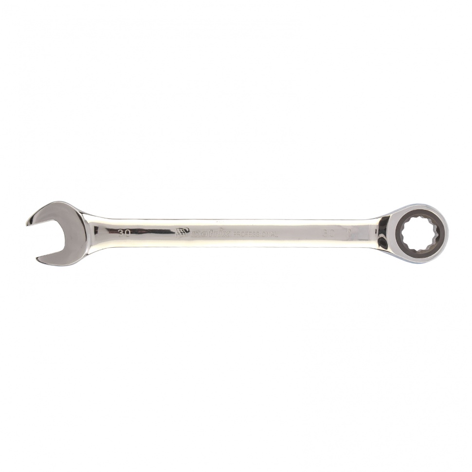 Комбинированный трещоточный ключ Matrix 14817 из стали CrV, с покрытием «зеркальный хром», размером 30 мм, позволяет быстро откручивать и закручивать болты и гайки. Рожковую часть удобно использовать там, где нет возможности полного охвата детали, а трещоточный механизм повышает удобство работы в труднодоступных местах.