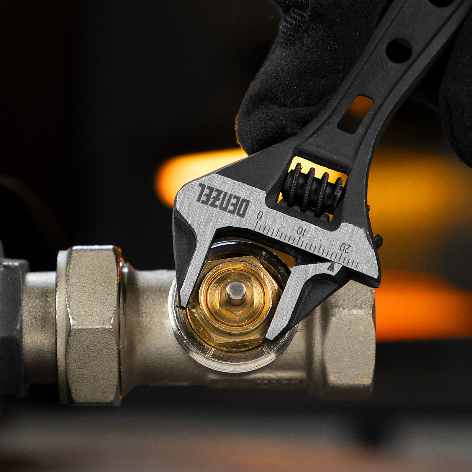 - Удобная эксплуатация — метрическая линейка на ключе помогает выставить нужный размах зева.
