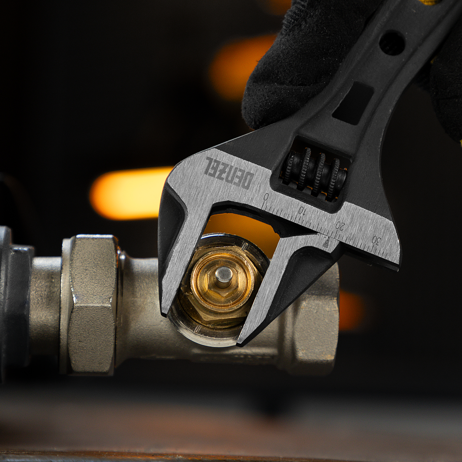 - Удобная эксплуатация — метрическая линейка на ключе помогает выставить нужный размах зева.