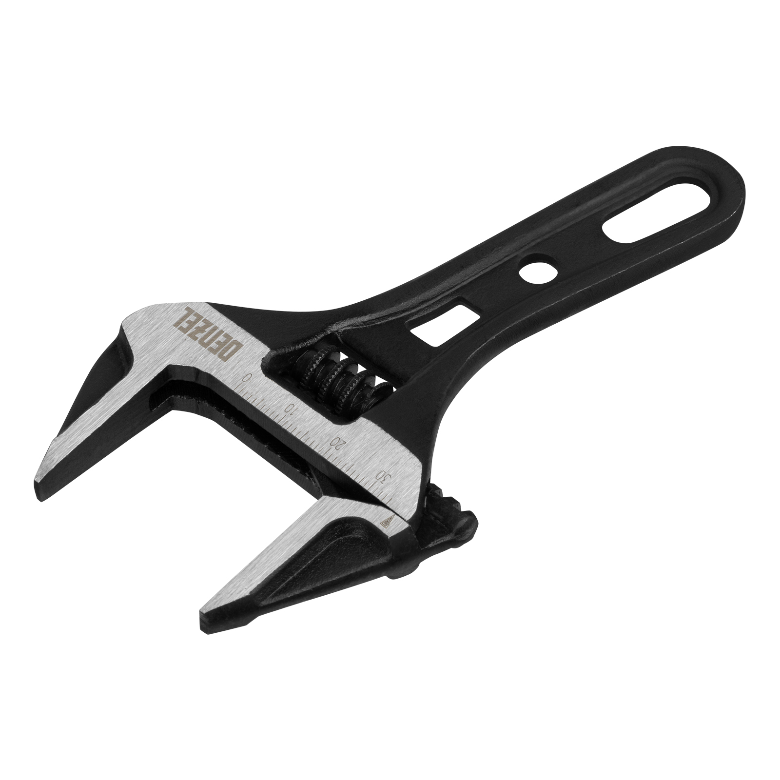 Ключ разводной кованый Denzel 15752 длиной 135 мм, из стали CrV, с укороченной рукояткой и увеличенным раскрытием губок, используется для монтажа и демонтажа крепежных элементов диаметром до 34 мм. Благодаря тонким губкам и укороченной рукоятке удобен для работы в труднодоступных местах. Имеет широкую область применения: сантехнические работы, мелкий бытовой ремонт, полупрофессиональная сфера и т. д.