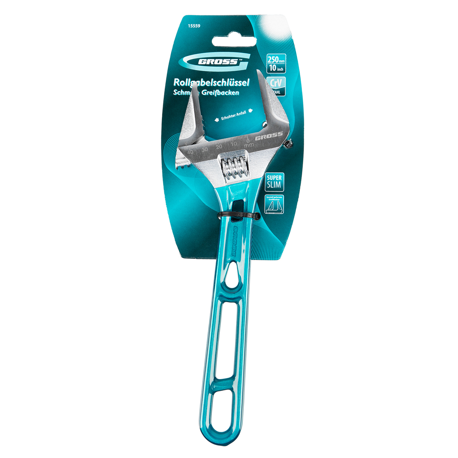 Облегченный разводной ключ Gross 15559 длиной 250 мм, из стали CrV, подходит для работы как с мелкими, так и с крупными крепежными элементами. Максимальный диапазон раскрытия зева составляет 43 мм. Конструкция инструмента усилена благодаря дополнительным ребрам жесткости на рукоятке. Ребристая рабочая поверхность губок обеспечивает надежный захват деталей и повышает точность работы.