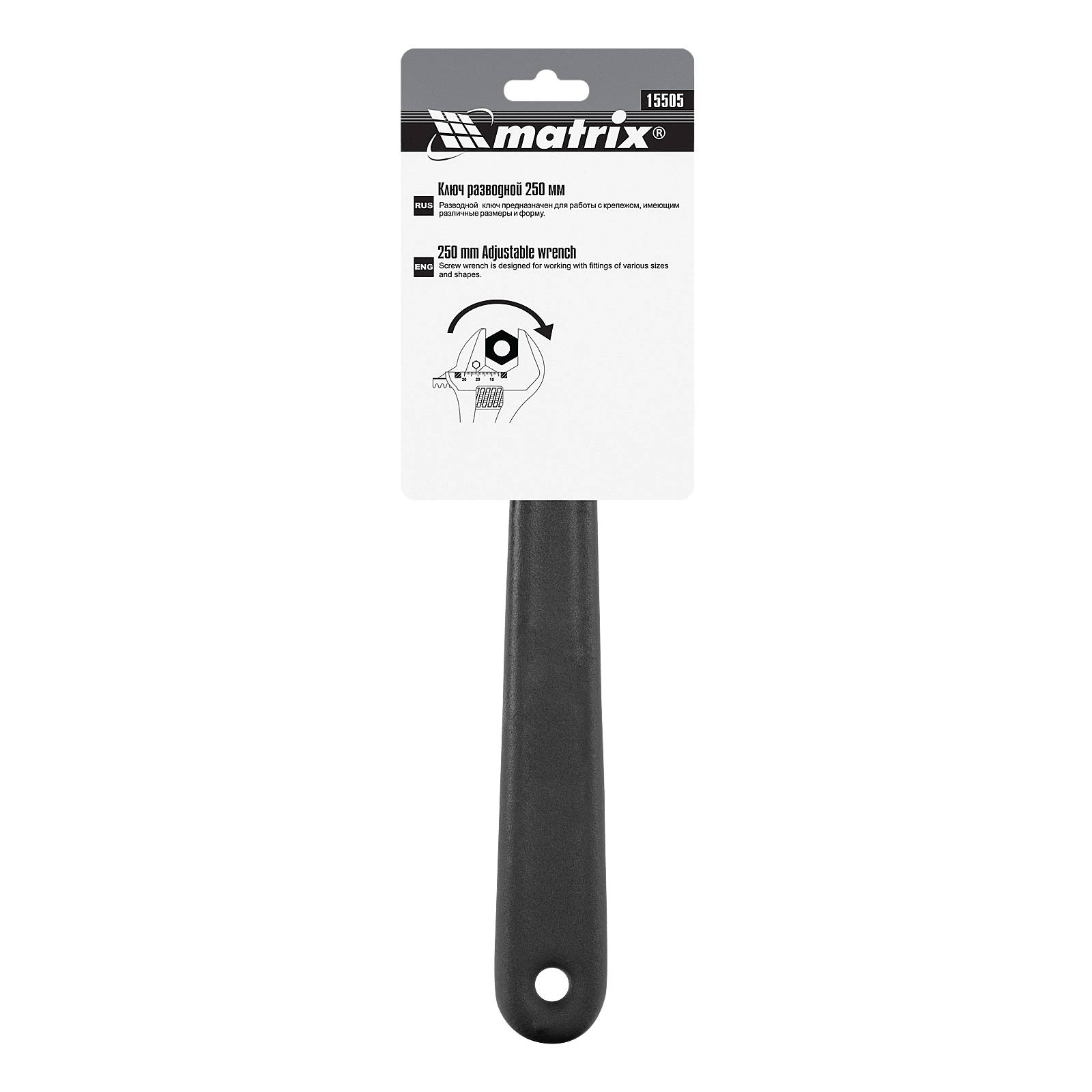 Разводной ключ Matrix 15505 длиной 250 мм используется для монтажа и демонтажа крепежных элементов. Заменяет собой целый комплект обычных гаечных ключей. Губки можно разводить на точно заданное расстояние, что позволяет захватывать детали различного размера. Разводной ключ пригодится для проведения слесарных, сантехнических, ремонтных работ.