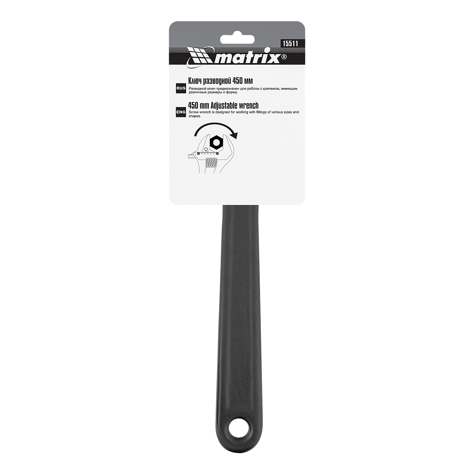 Разводной ключ Matrix 15511 длиной 450 мм используется для монтажа и демонтажа крепежных элементов. Заменяет собой целый комплект обычных гаечных ключей. Губки можно разводить на точно заданное расстояние, что позволяет захватывать детали различного размера. Разводной ключ пригодится для проведения слесарных, сантехнических, ремонтных работ.