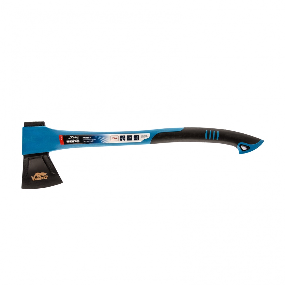 Колун Барс NYLON 21800 с полотном весом 2000 г и двухкомпонентной рукояткой предназначен для быстрой колки древесины. Широкое лезвие не застревает в материале, что повышает эффективность работы. Инструмент пригодится в хозяйстве, когда необходимо подготовить большой объем дров и наколоть средние по размеру чурбаки.