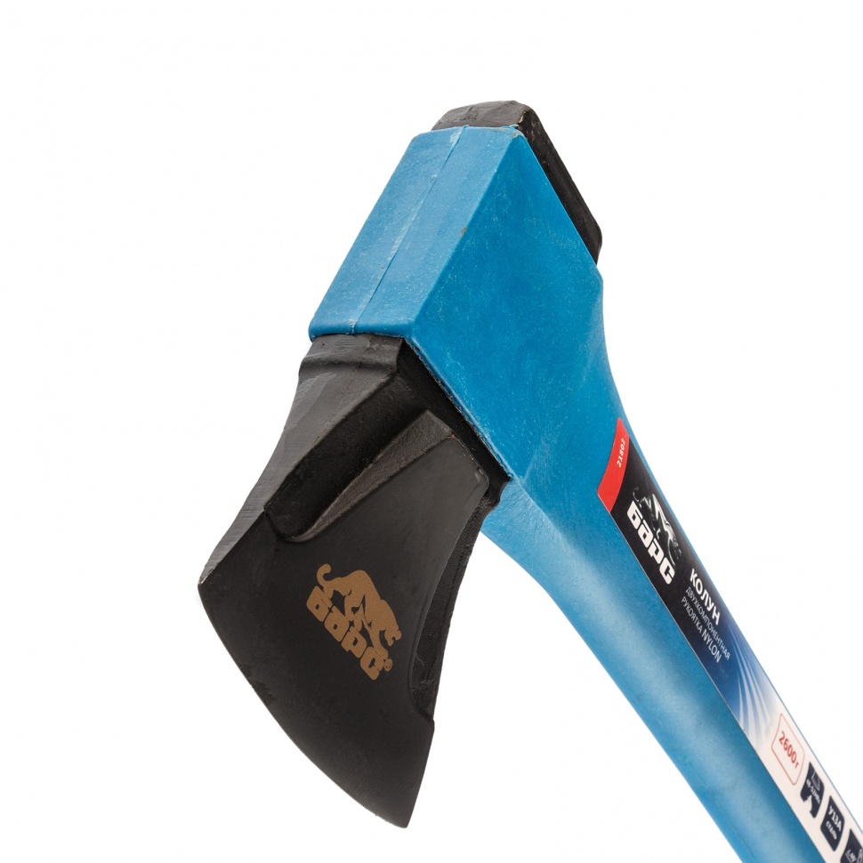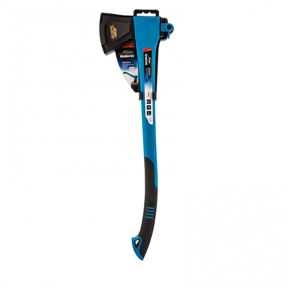 Колун Барс NYLON 21802 с полотном весом 2600 г и двухкомпонентной рукояткой предназначен для быстрой колки древесины. Широкое лезвие не застревает в материале, что повышает эффективность работы. Инструмент пригодится в хозяйстве, когда необходимо подготовить большой объем дров и наколоть средние по размеру чурбаки.
