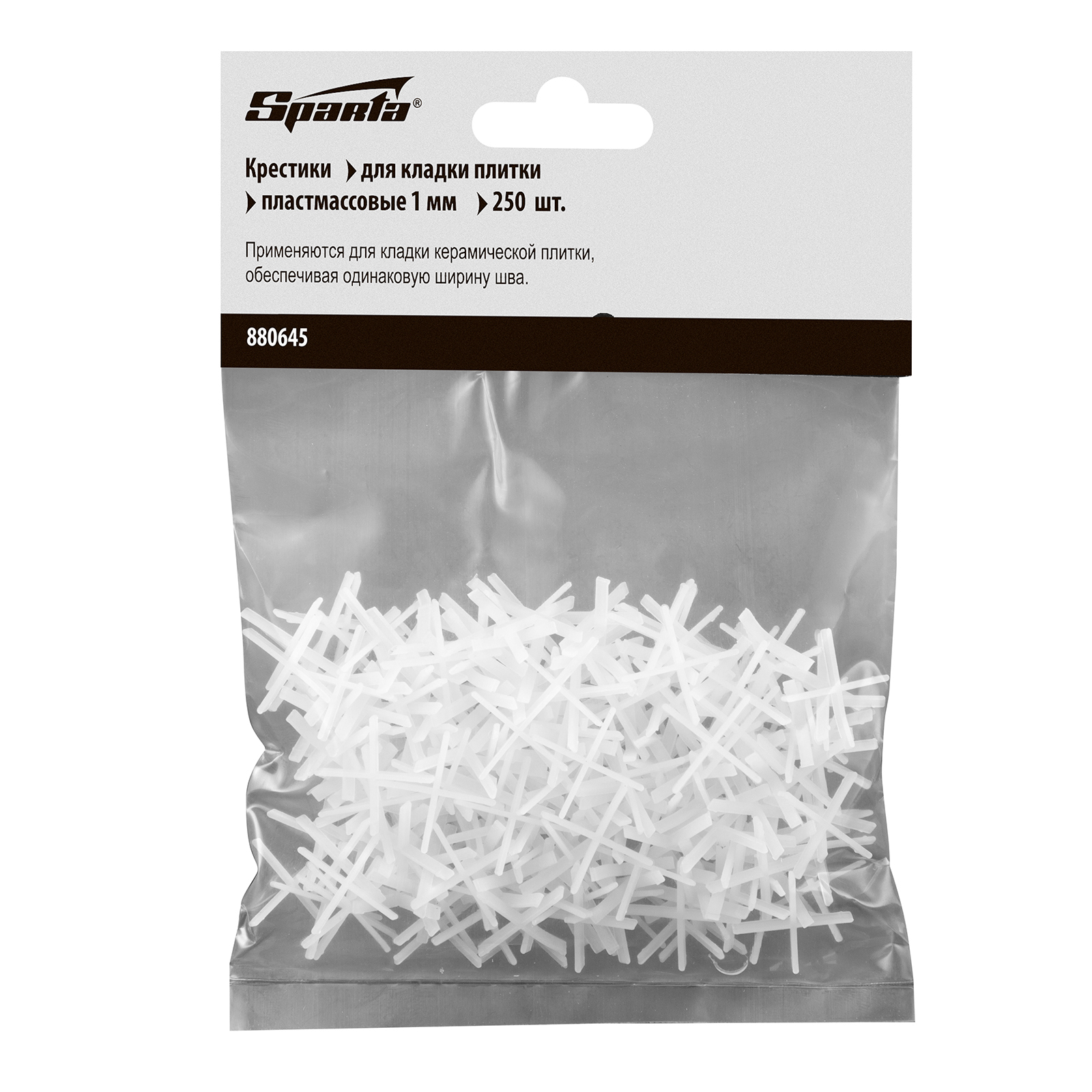 Крестики для кладки плитки Sparta 880645 толщиной 1,0 мм, 250 шт. в упаковке, позволяют добиться одинакового межплиточного расстояния в ходе облицовочных работ. Облегчают укладку плиточного покрытия и обеспечивают ему эстетичный внешний вид.