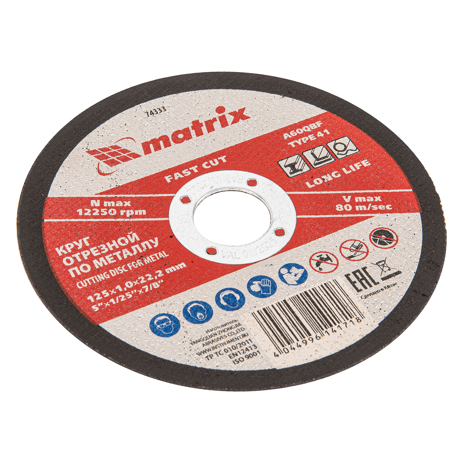 Отрезной круг по металлу Matrix A60QBF 74333, 125 х 1,0 х 22,2 мм, оптимально подходит для сухого реза углеродистых сталей. Он устанавливается на углошлифовальные машины с посадочным диаметром 22,2 мм. Круг рассчитан на бытовое использование в частной мастерской или гараже.