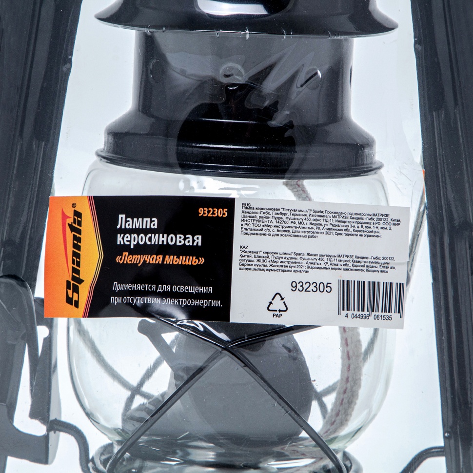 Керосиновая лампа Sparta «Летучая мышь» 932305 с емкостью для топлива объемом 0,2 л используется в качестве альтернативного источника света при отсутствии электричества. Ее можно расположить как в помещении, так и на улице. Транспортировку и размещение облегчают петля для переноски и скоба для подвешивания. Защитная решетка предохраняет колбу от повреждений. Лампа подойдет для освещения дачного дома или беседки.