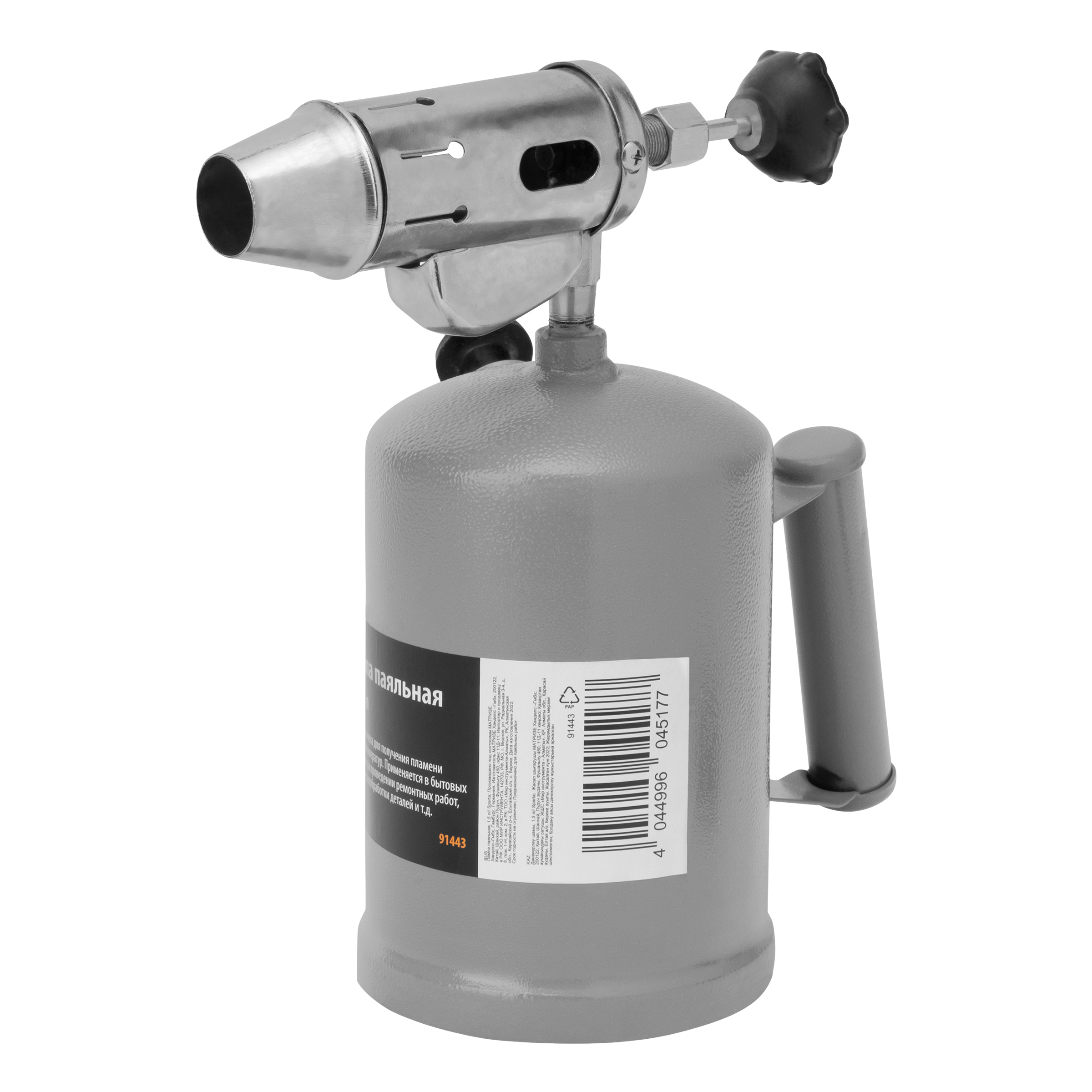 Паяльная лампа Sparta 91443 с объемом бака 1,5 л предназначена для получения направленного пламени. Используется для пайки деталей и труб, нагрева заржавевших или замерзших соединений, снятия лакокрасочных покрытий, монтажа термоусадки. Устройство также пригодится в походе или на даче — при наличии специальной подставки с его помощью можно готовить пищу. Максимальный расход топлива составляет 1,2 л/ч при предельной заполняемости бака 1,1 л.