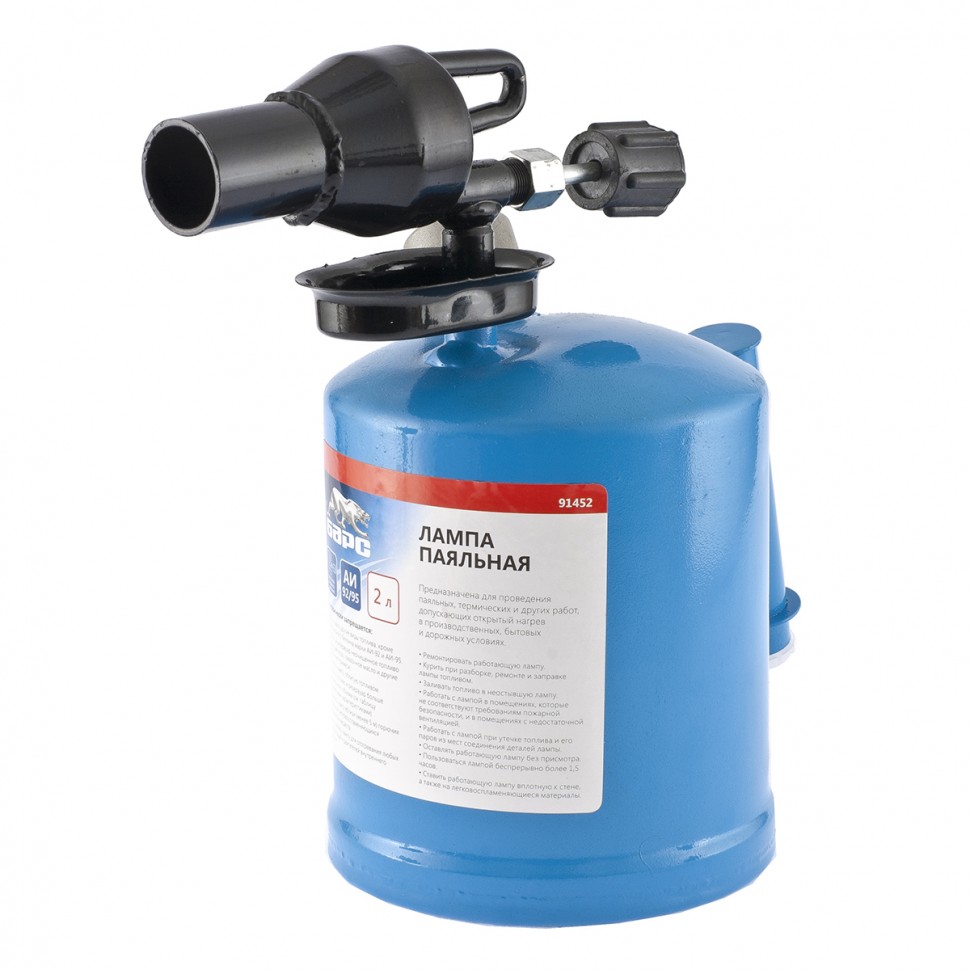 Паяльная лампа Барс 91452 с объемом бака 2 л предназначена для нагрева поверхностей при помощи открытого направленного пламени. Полной заправки 1,5 л топлива хватает больше чем на час работы при расходе 1,2 л/ч. Устройство используется для выполнения ремонтных и демонтажных работ — для пайки, термообработки деталей, установки термоусадочных трубок, снятия лакокрасочного покрытия. Также лампа будет полезна в сельском хозяйстве и в быту.