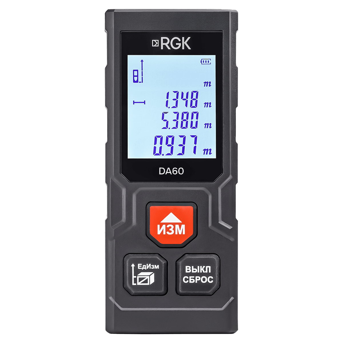 Рабочий диапазон 0.05 - 60 метров, точность ±2 . Ресурс батареек: до 8000 измерений. Выбор точки отсчета: верхний или нижний край корпуса. |
