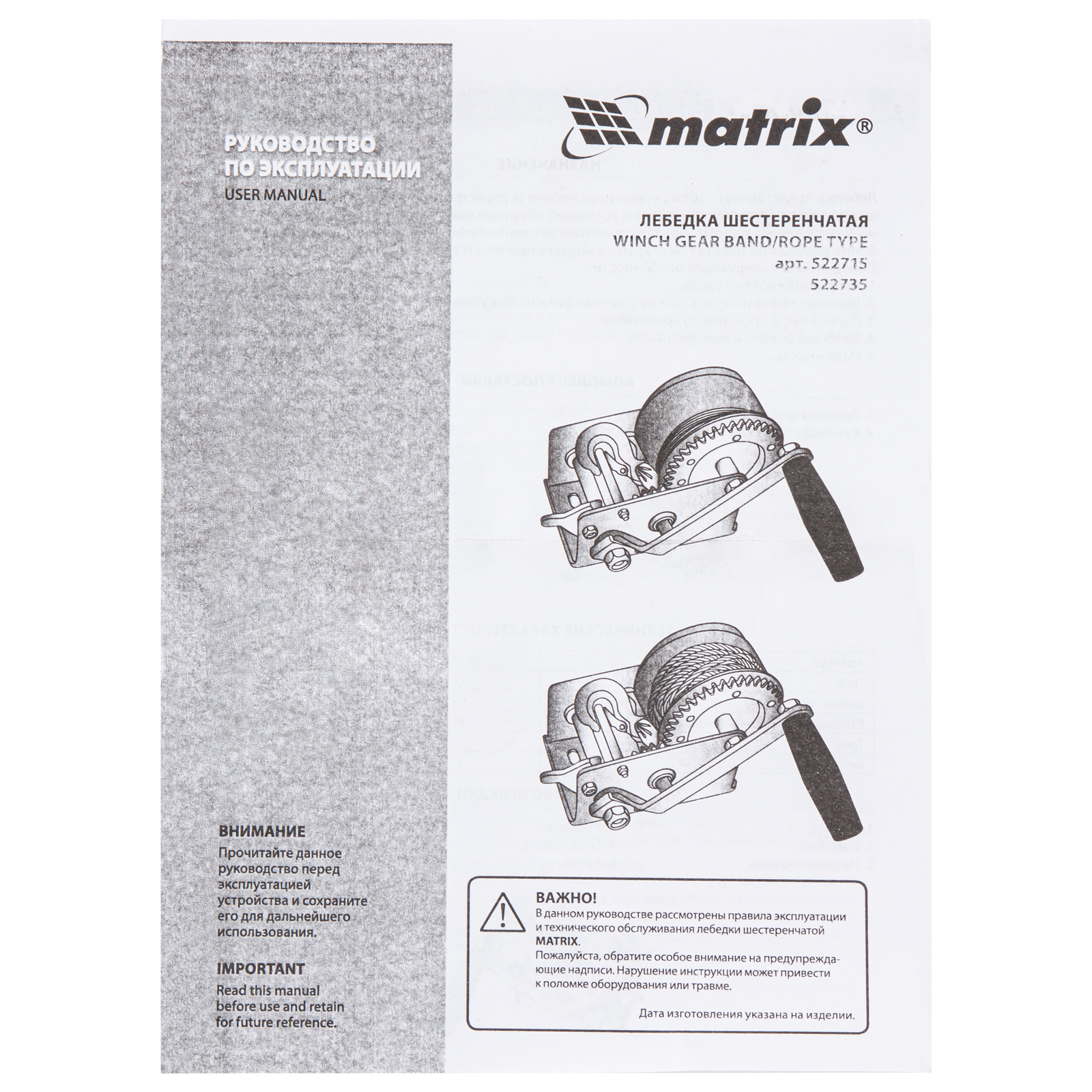 - Режим холостого хода — во время работы без нагрузки не происходит самопроизвольной размотки/намотки троса.