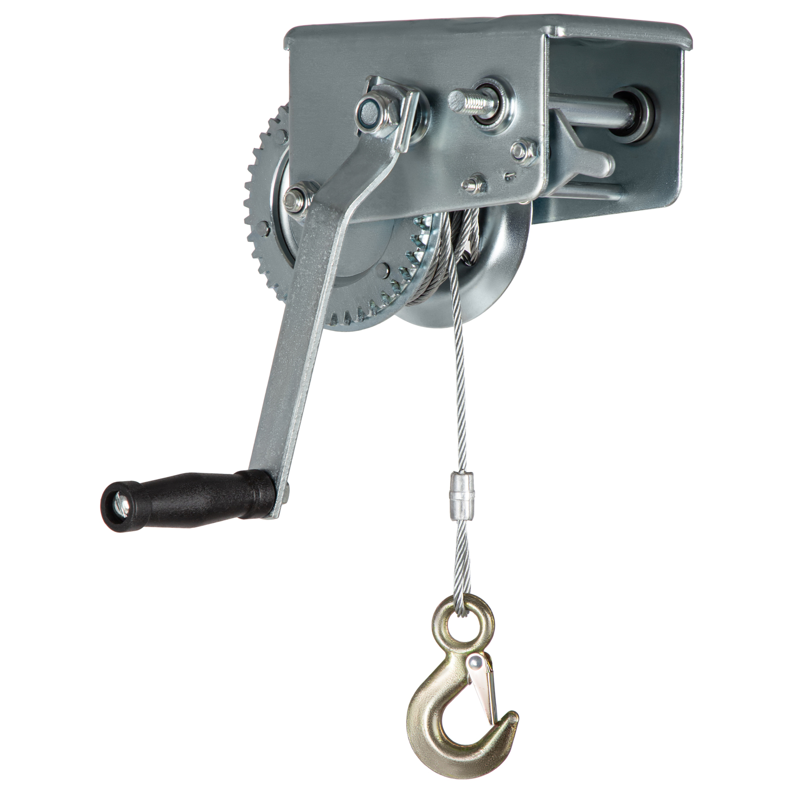 - Прочность и долговечность — корпус лебедки и шестеренчатый механизм выполнены из стали.