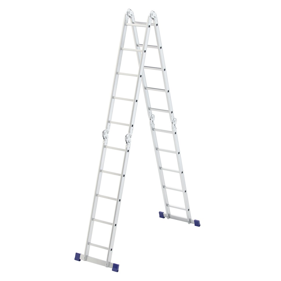 Шарнирная алюминиевая лестница Сибртех 97883 представляет собой 4 секции по 5 ступеней, которые можно настроить в нескольких рабочих положениях. Она может использоваться в качестве приставной лестницы, двухсторонней стремянки и помоста. Будет полезна как в быту, так и на небольших стройках, в гараже и магазинах.