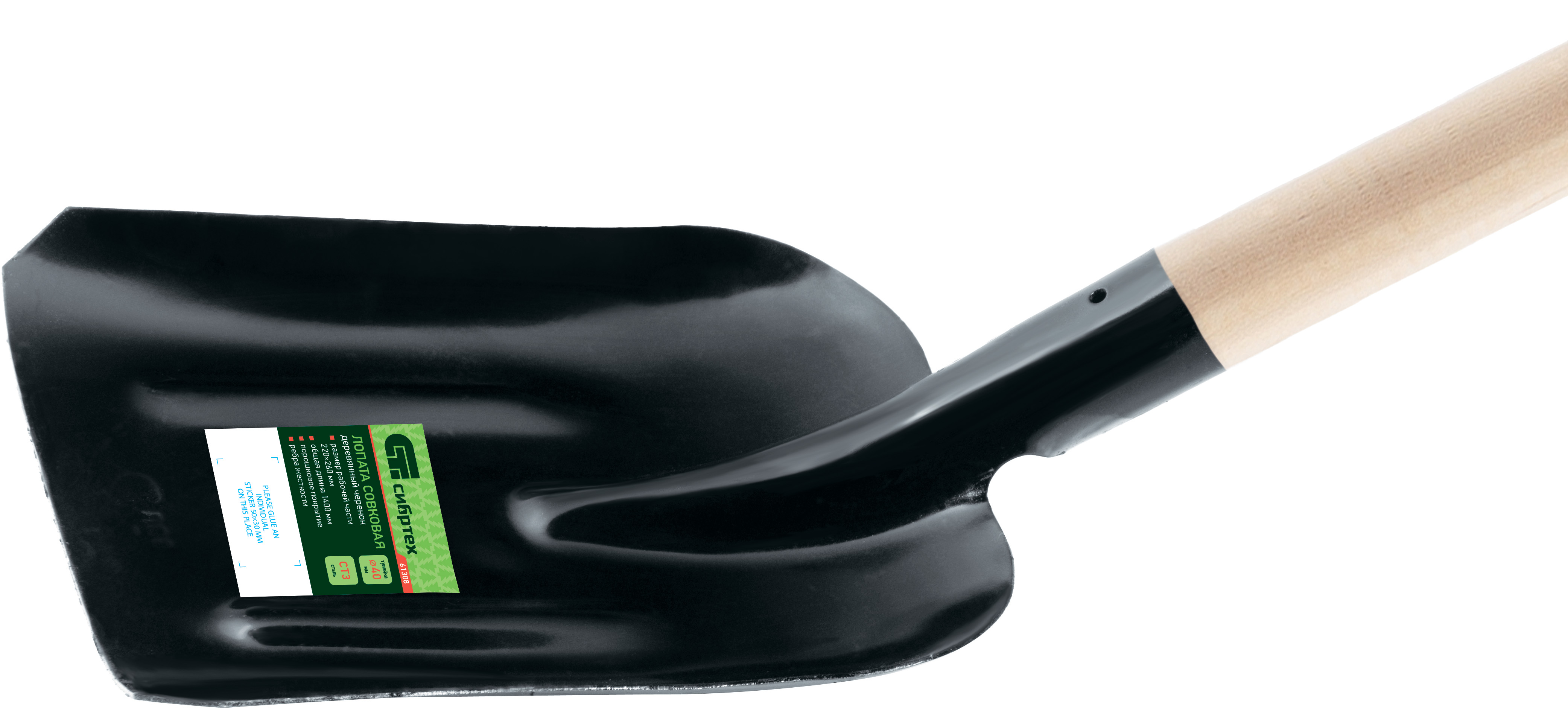Совковая лопата Сибртех 61308 размером 220 х 260 х 1400 мм, с деревянным черенком и ребрами жесткости, удобна для выборки ям, перемещения щебня, угля, песка, также используется для приготовления строительных смесей. Боковые края полотна загнуты кверху, поэтому лопатой удобно набирать грунт, сыпучие и гранулированные материалы. Инструмент будет полезен на строительной площадке и загородном участке. Лопата поставляется в сборе с черенком и полностью готова к использованию.