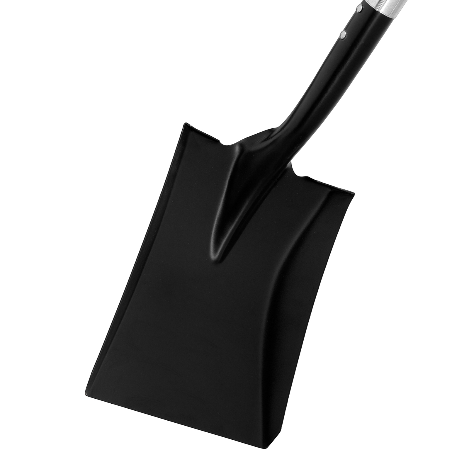 - Продуманная конструкция — фибергласовый черенок не утяжеляет лопату и не разрушается под действием ультрафиолета, а удлиненная цельновырубная тулейка предотвращает его излом.