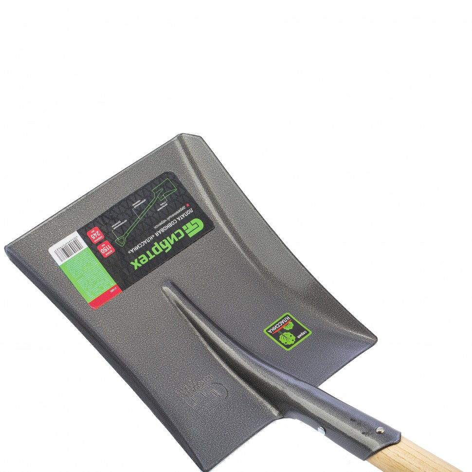 Совковая лопата Сибртех 61480 с деревянным лакированным черенком, размером 250 х 295 х 1150 мм, удобна при выборке ям, перемещении щебня, угля, песка, также используется при приготовлении строительных смесей. Боковые края полотна загнуты кверху, поэтому лопатой удобно набирать грунт, сыпучие и гранулированные материалы. Лопата будет полезна на строительной площадке и загородном участке.