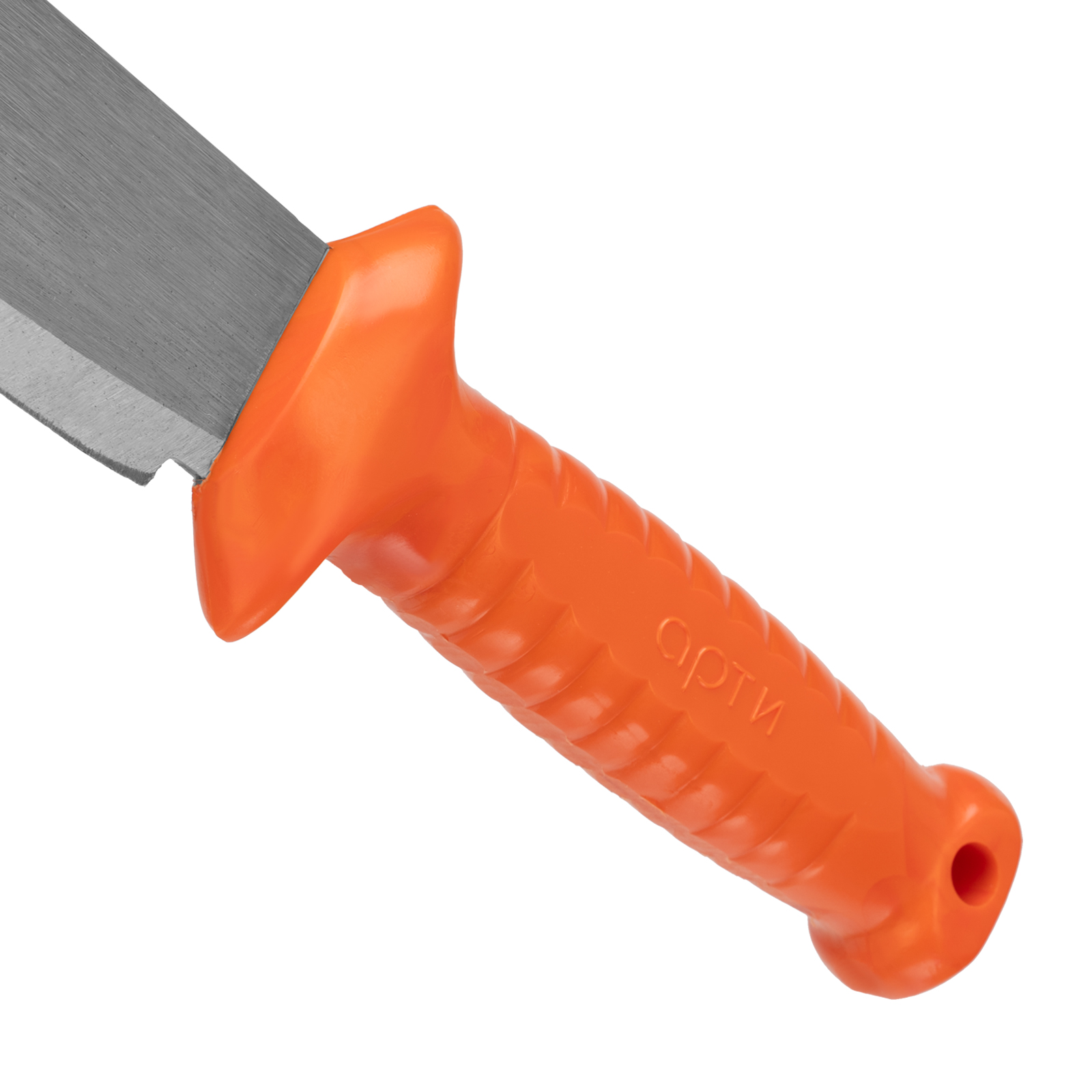 - Пластиковая рукоятка имеет специальные упоры и рифление для надежного хвата без проскальзывания.