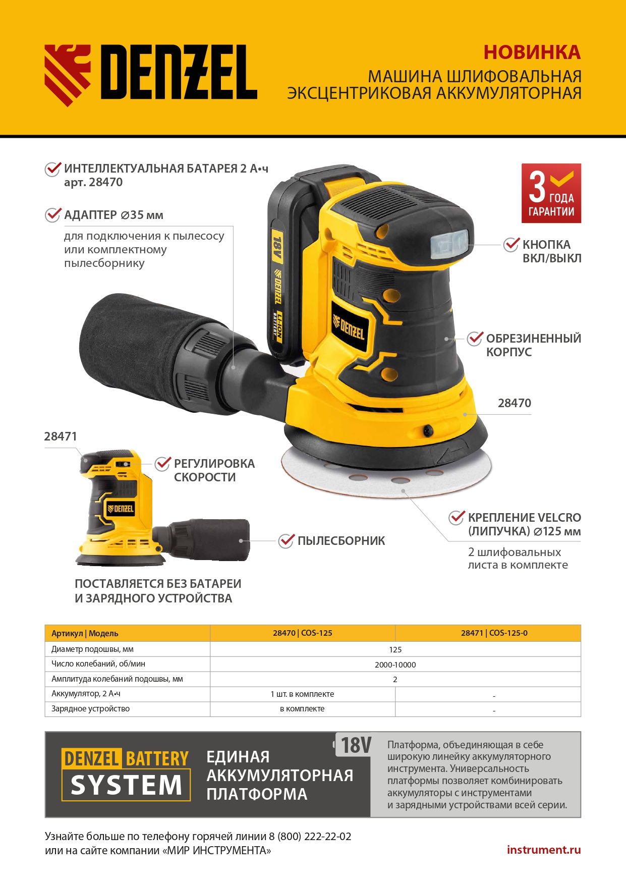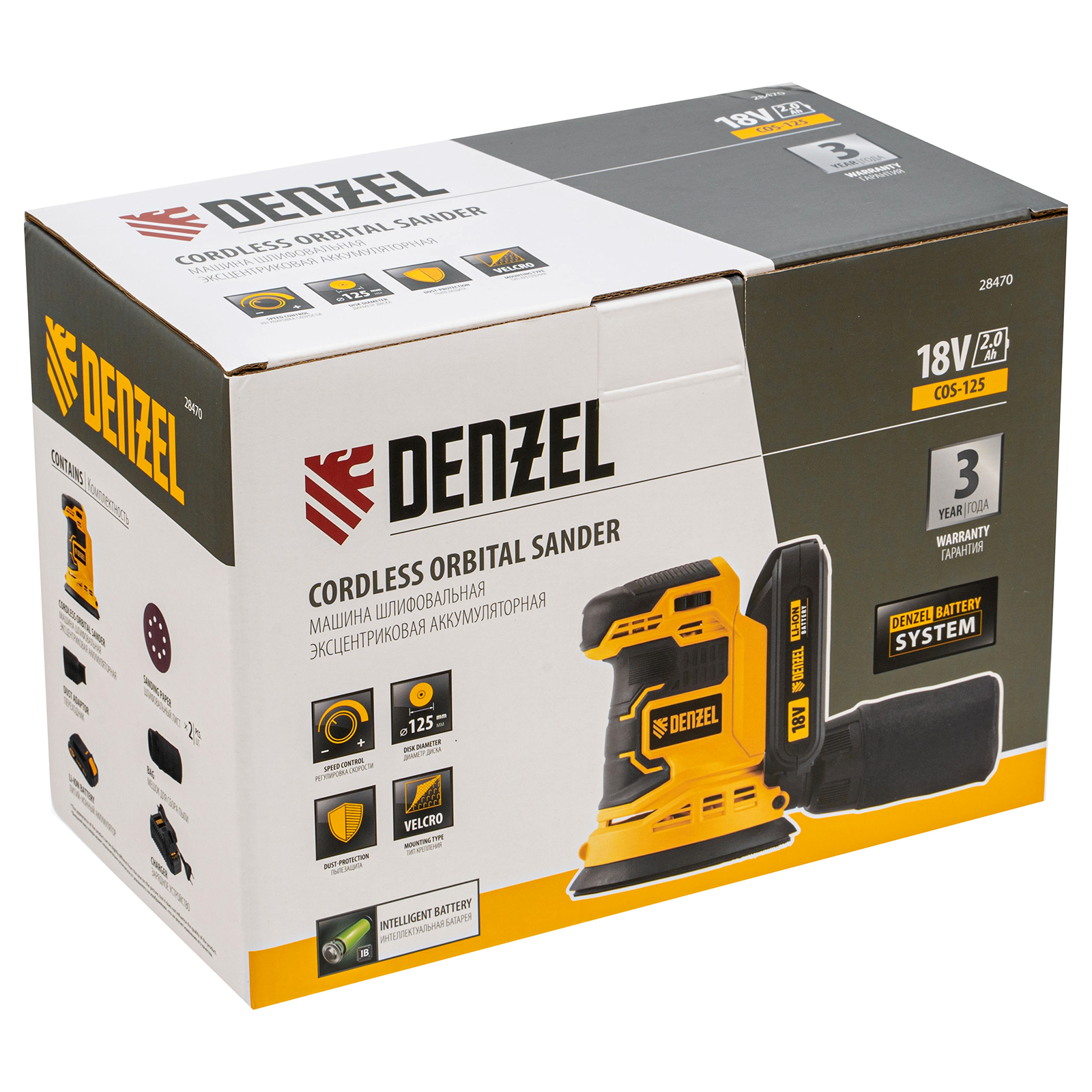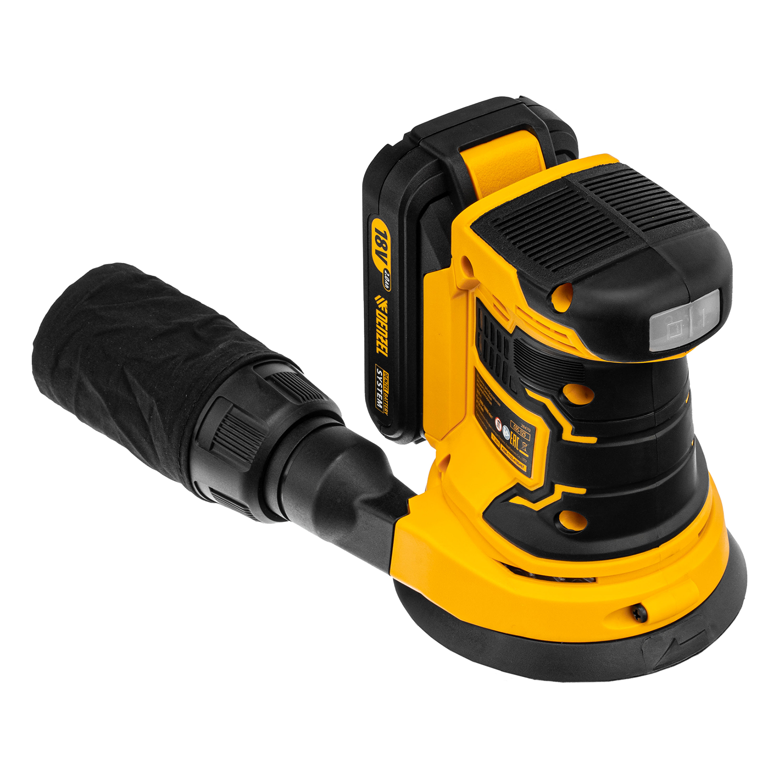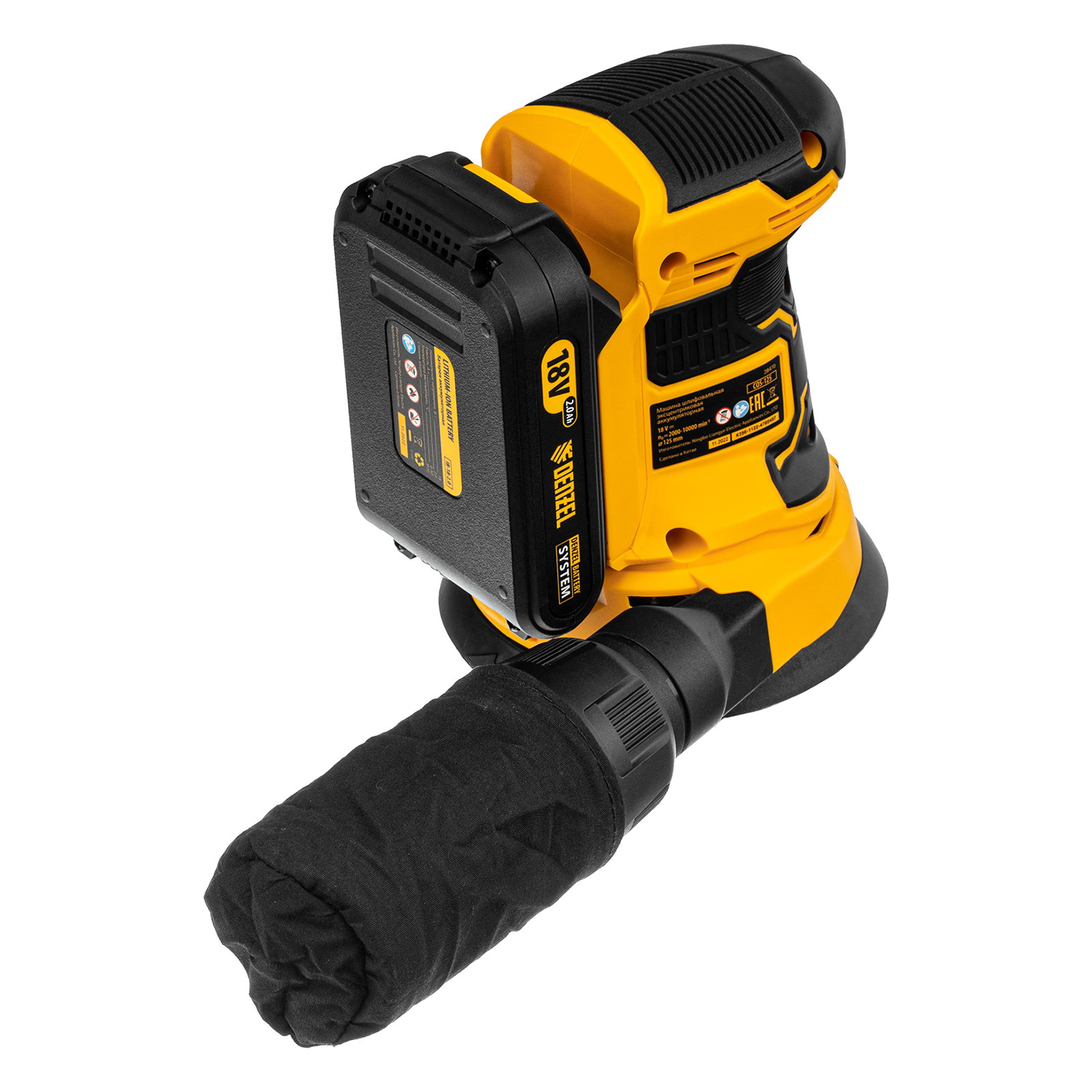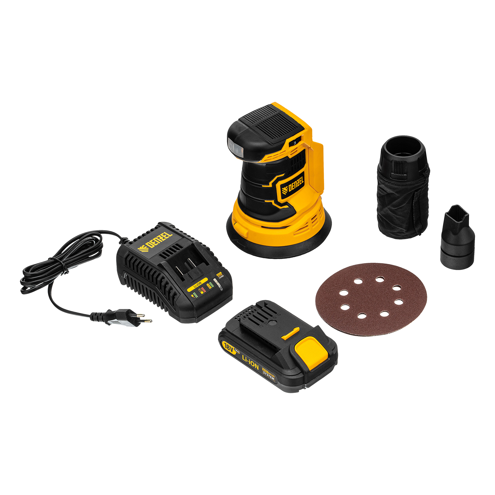 Машина шлифовальная эксцентриковая - 1 шт, Адаптер для пылесоса - 1 шт, Мешок для сбора пыли - 1 шт, Адаптер пылесоса - 1 шт, Шлифовальный лист - 2 шт, Батарея аккумуляторная - 1 шт, Зарядное устройство - 1 шт, Руководство по эксплуатации с гарантийным талоном - 1 шт |