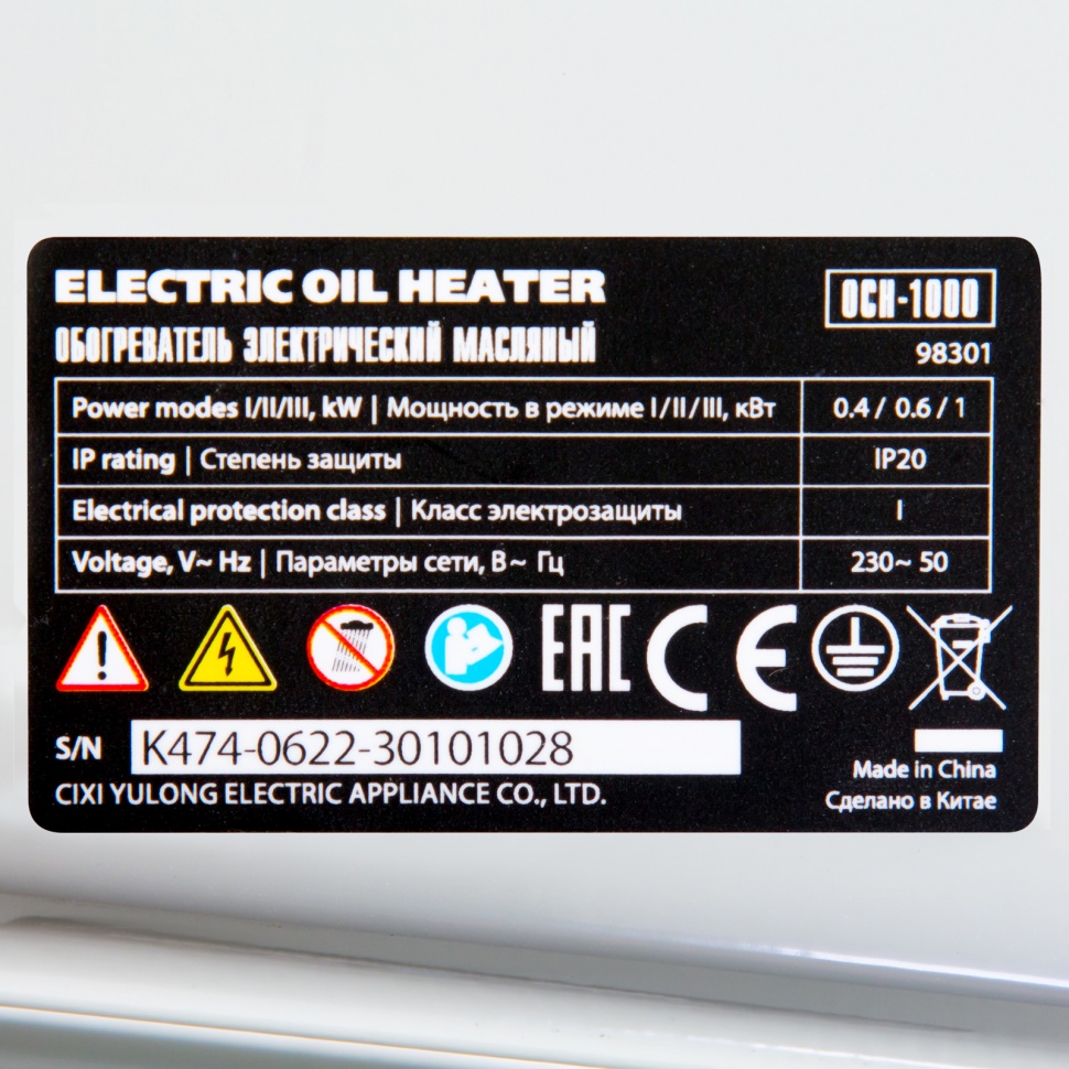 Масляный обогреватель - 1 шт, Колесные опоры с креплением - 2 шт, Руководство по эксплуатации - 1 шт |
