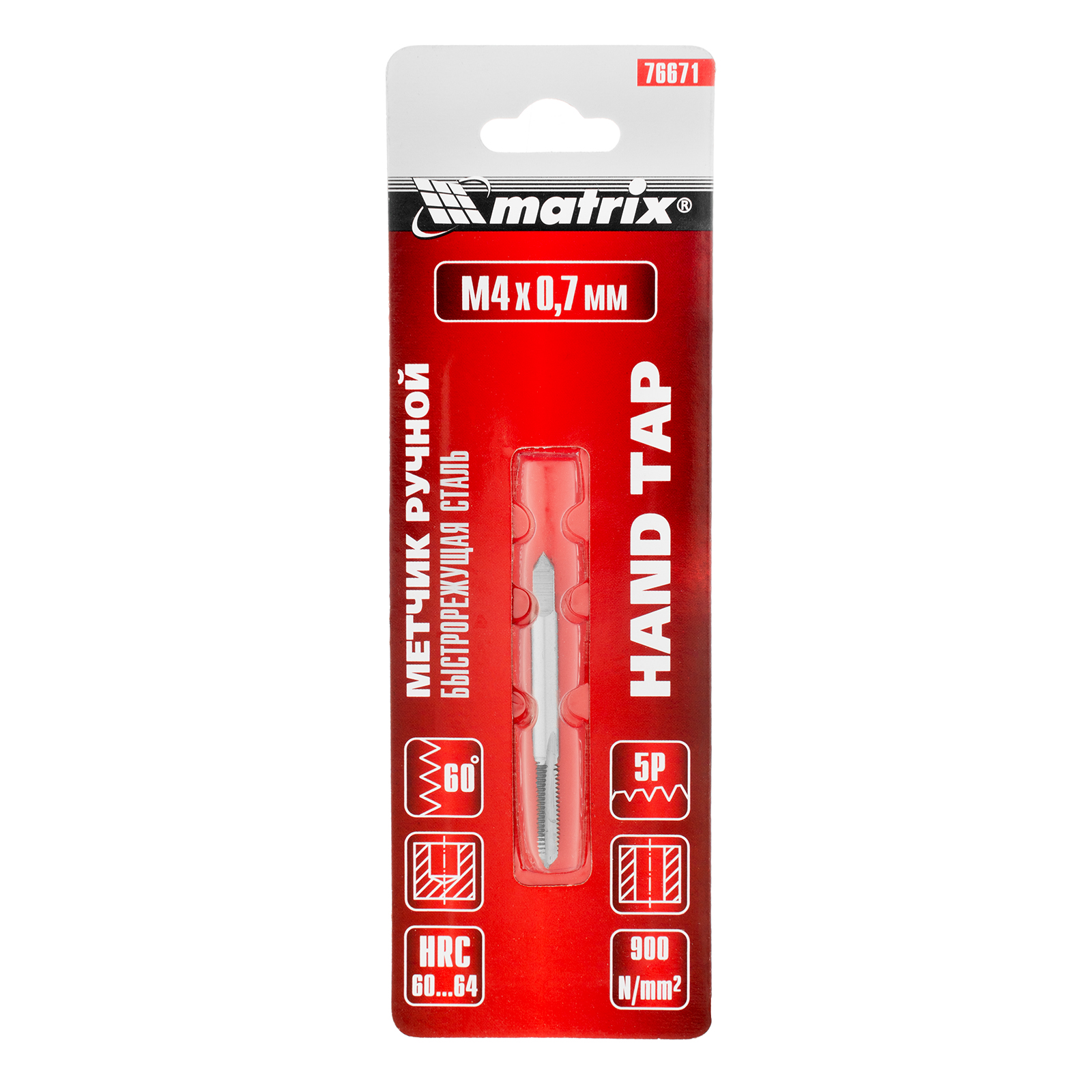 Ручной метчик Matrix 76671, HSS, — резьбонарезной инструмент, который используется для создания резьбы диаметром М4 и шагом 0,7 мм. Оптимален для работы с деталями из твердой стали прочностью до 900 Н/мм². Нарезает резьбу за один проход. Метчик устанавливается на метчикодержатель с патроном под хвостовик 3,5 мм. Будет полезен в слесарной мастерской, а также дома или в гараже.
